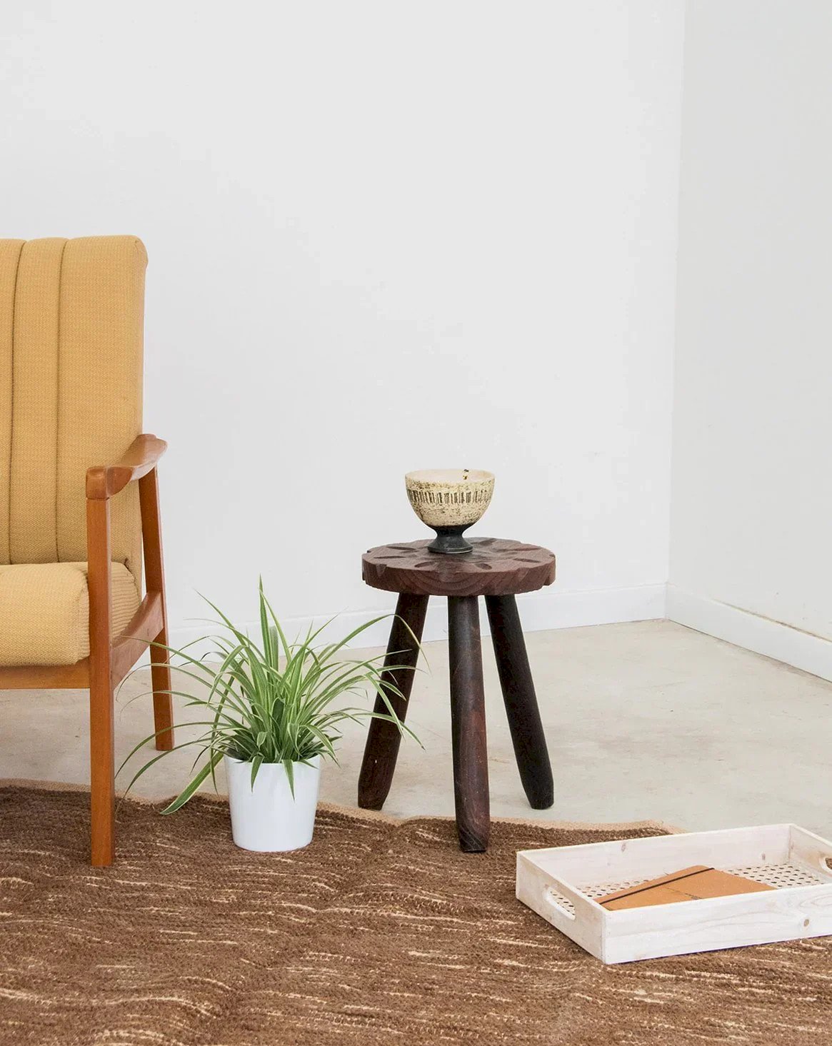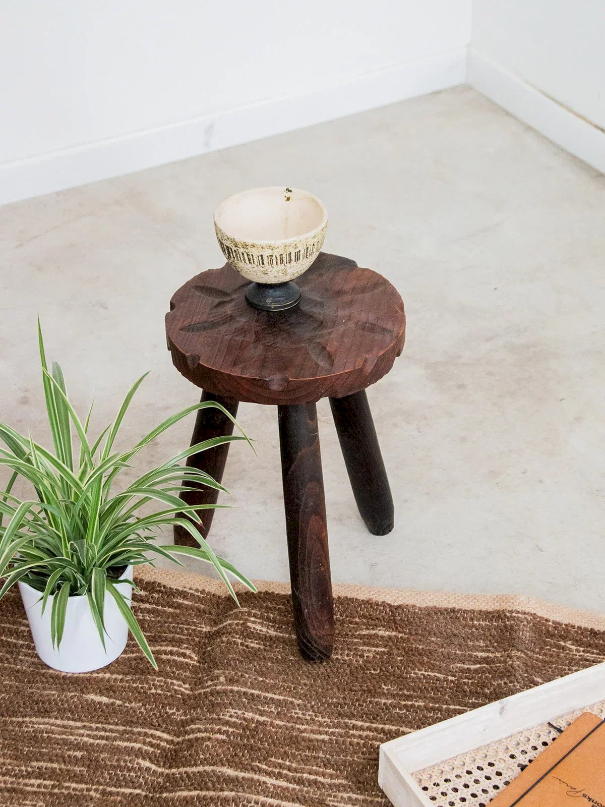 Add a bold touch to your interior with this dark wood brutalist-style stool. Its small dimensions make it a versatile accessory ideal for small spaces. With its three sturdy legs and round design, this stool combines functionality and minimalist aesthetics. Whether used as an extra seat or a side table, it will blend into any contemporary decor. A must-have at a low price for design lovers! Height: 37.5 cm Diameter: 26.5 cm Condition: Used item. Item showing some superficial signs of wear, fully operational and functioning correctly. It may be a demonstration model or an item returned to the store after a short period of use. Any imperfections. Color: Multicolored Height: Country Width: Wood Length: Low stools Brand: Debongout Type: Vintage product Material: Wood Style: Country Assembly required: No Assembly level: Fully assembled