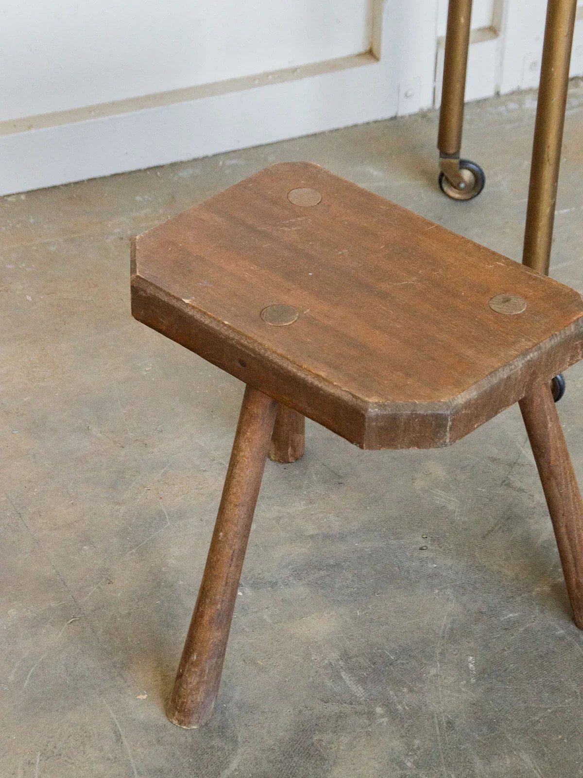 Discover this small triangular stool in a rectangular format, which emphasizes simplicity and elegance. Its splayed legs give it a light and typically vintage look. Compact and practical, it can be used as extra seating or as a decorative support. Its clean design easily integrates into all interior styles. A discreet object but full of charm, both functional and decorative. Seat length: 33 cm Base length: 39 cm Height: 34 cm Depth: 23 cm Condition: Used: Item that has been used. Item showing some superficial signs of wear, fully operational and functioning properly. It could be a demonstration model or an item returned to the store after a short period of use. Possible imperfections. Color: Multicolor Height: Country Width: Wood Length: Low stools Brand: Debongout Type: Thrifted product Material: Wood Style: Country Assembly required: No Assembly level: Fully assembled