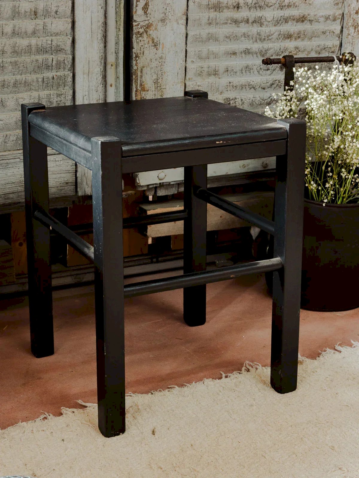 Add a touch of retro charm to your interior with this square black wooden stool. Its vintage design harmoniously fits into various decor styles while providing a comfortable and sturdy seat. Lightweight and easy to move, it is ideal for entertaining guests or completing a living space. A must-have for those who appreciate authenticity and timeless elegance. Length: 35 cm Width: 35 cm Height: 46 cm Condition: Used: Item has been used. Item shows some superficial wear marks, ... Used: Item has been used. Item shows some superficial wear marks, fully operational and functioning correctly. It may be a demonstration model or an item returned to the store after a short period of use. any potential imperfections. Color: Multicolor Height: Country Width: Wood Length: Low stools Brand: Debongout Type: Vintage product Material: Wood Style: Country Assembly required: No Assembly level: Fully assembled