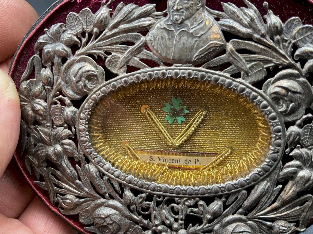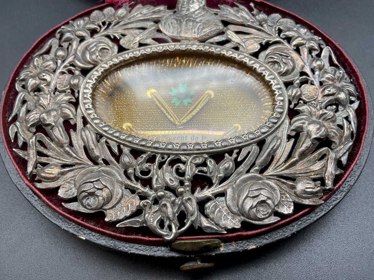 Reliquary of Saint Vincent de Paul, In Its Case, in silver Dimension: 10 x 8 cm Authenticity: Original Type: Showcase item, Decorative Origin: France Subtype: Case Material: Solid silver Style: Napoleon III
