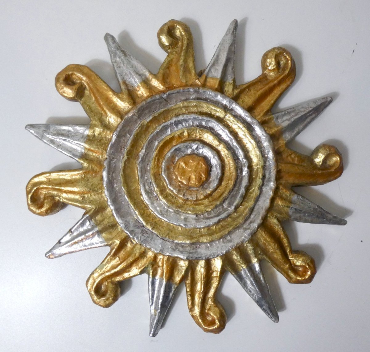 Relief wall sculpture Sun papier mâché gold and silver Vintage