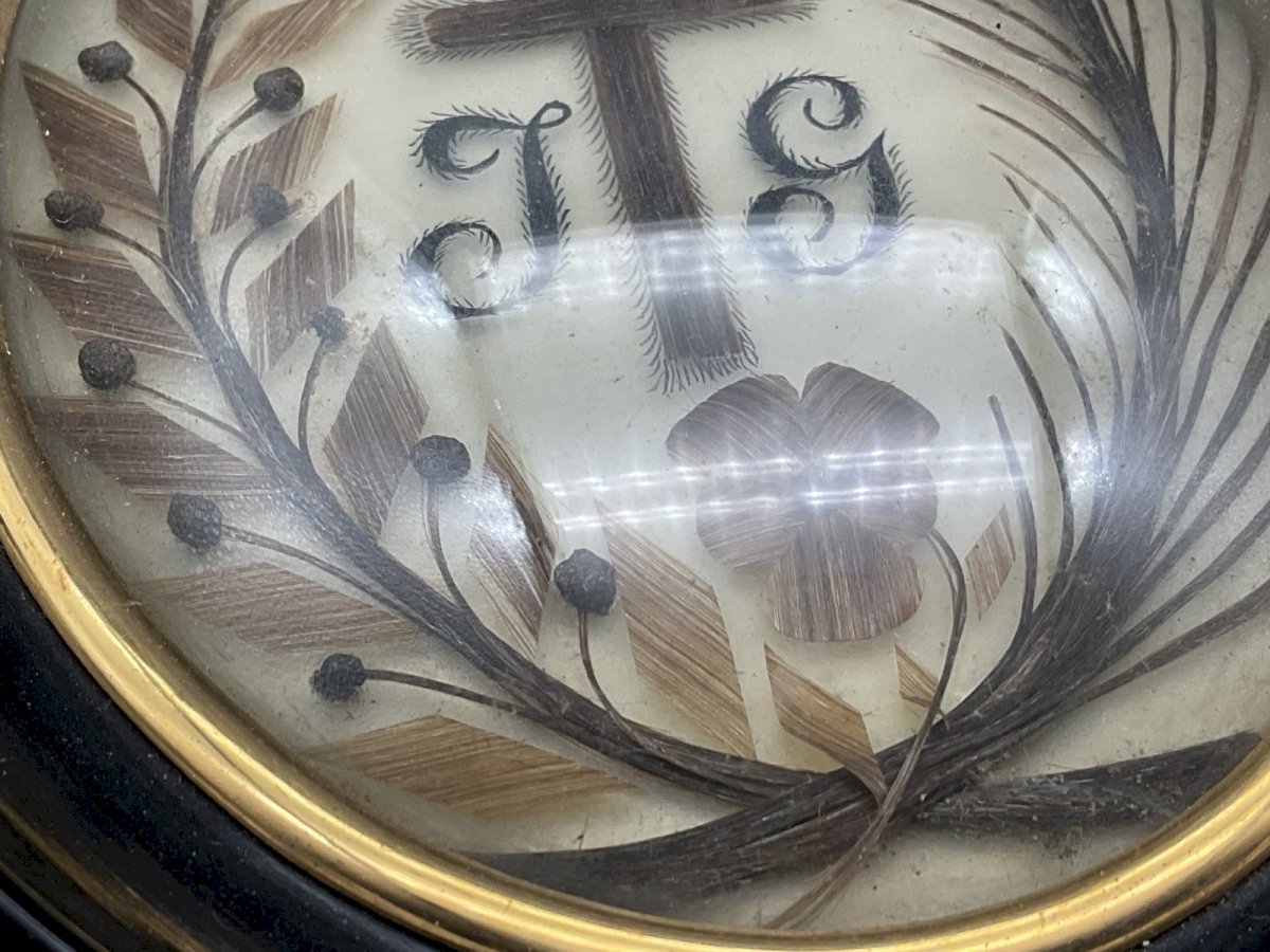 hair reliquaries, Napoleon III frame Height 18.5 cm Width 16 cm Authenticity: Original Type: Showcase item, Decorative Origin: France Subtype: Reliquaries Style: Napoleon III Material: Hair