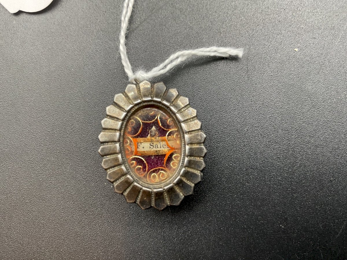 Silver reliquary, relics of St. Francis de Sales dimensions: 2.7 x 2.2 cm Condition: Used: Item has been used. Please consult the seller's description for more details... Used: Item has been used. any potential imperfections. Type: Christianity Subtype: Reliquary Country of manufacture: France Material: Wood