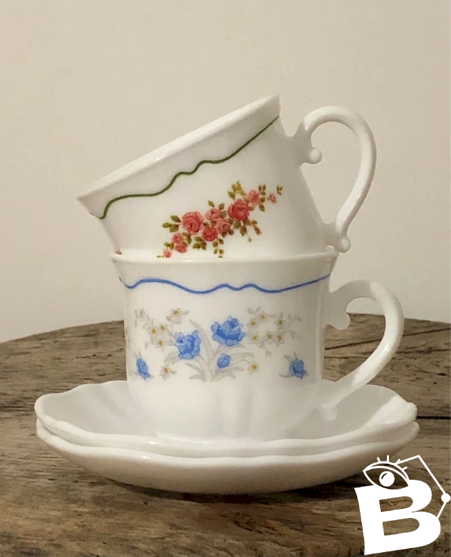 Retro vintage Arcopal cups and saucers White/Multicolored