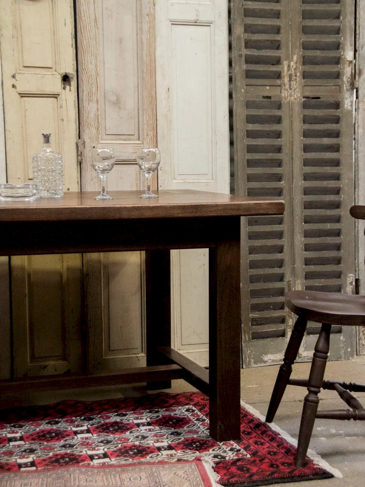 Elevate your dining room with this large solid wood farmhouse table, featuring a thick top and generous proportions that comfortably accommodate six to eight guests. Its sturdy legs, subtly enhanced with a slight veneer, ensure lasting stability and confer a rustic elegance, balancing tradition and modernity. Ideal for family meals or friendly dinners, it creates a warm and authentic atmosphere around a noble material. Length: 180 cm Width: 90 cm Height: 77 cm Height under the top: 72 cm A little history of the farmhouse table The farmhouse table is a timeless design that has long adorned dining rooms. This wooden dining table, inspired by autumn, is a classic for vintage and bohemian decor. Classic with bright and luminous wood tones and a raw appearance, it is especially chosen for its large size, uniform look, and drawers placed under the top. The large farmhouse table is an essential element of all family gatherings! Condition: Used: Item that has been used. Item showing some superficial signs of wear, fully operational and functioning properly. It may be a display model or an item returned to the store after a short period of use, including any potential imperfections. Brand: Debongout Type: Vintage product Material: Wood Style: Country Custom: Dining tables