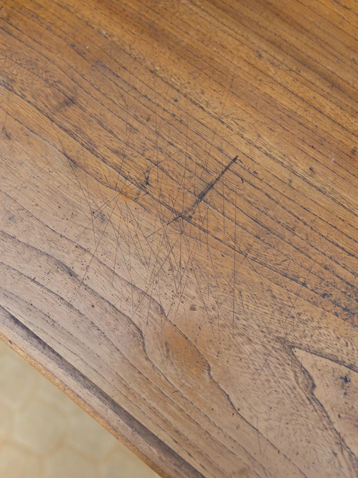 This beautiful wooden table charms with its simple lines and intricate details. Perfect as a small dining table to accommodate up to 4 guests or as a side desk, it easily finds its place in a kitchen, living room, or even a bedroom. Its top, marked by time, provides a lovely patina, full of history. One can imagine it surrounded by mismatched chairs or accessorized with a lamp and lovely notebooks for a cozy work corner. Width: 110 cm Height: 74 cm Depth: 59 cm A brief history of the farmhouse table The farmhouse table is a timeless design that has adorned dining rooms for a long time. This wooden dining table, inspired by autumn, is a classic for vintage and bohemian decor. Classic with bright and vibrant wood tones and a raw appearance, it is mainly chosen for its large size, its solid look, and its drawers located under the top. The large farmhouse table is an essential element for all family gatherings! Condition: Used: Item has been used. Item shows some surface wear marks... Used: Item has been used. Item shows some surface wear marks, fully operational and functioning correctly. It may be a demonstration model or a returned item after a short period of use. the possible imperfections. Brand: Debongout Type: Vintage product Material: Wood Style: Country Custom: Dining tables