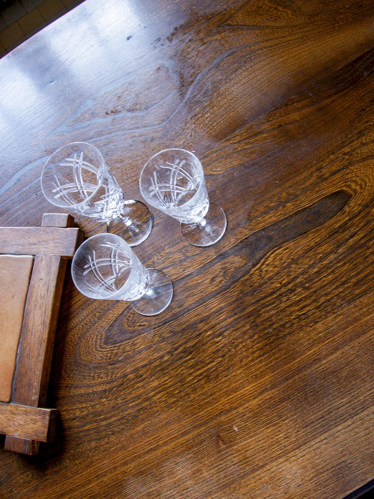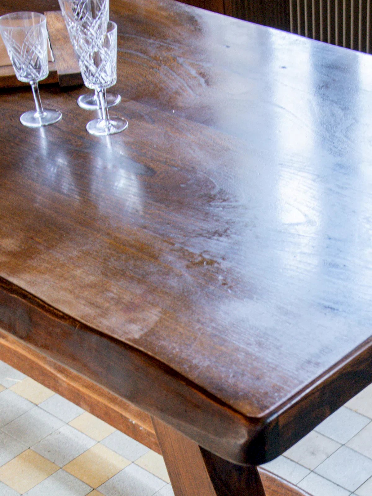 Bring a touch of raw elegance to your dining room with this brutalist-style table. Designed to accommodate up to 8 guests, it is perfect for your friendly meals. The assembled wooden legs provide strength and a unique character to the whole. With its wear marks, this weathered table tells a story, adding charm to your interior. A piece of furniture that is both functional and aesthetic, perfect for a warm and modern living space. Length: 200 cm Height: 76 cm Height under the tabletop: 69.5 cm Depth: 88 cm A Brief History of the Farmhouse Table The farmhouse table is a timeless design that has long adorned dining rooms. This wooden dining table, inspired by autumn, is a classic for vintage and bohemian decor. Classic with bright and luminous wood tones and a raw appearance, it is especially chosen for its large size, its solid look, and its drawers placed under the tabletop. The large farmhouse table is an essential element of all family gatherings! Condition: Used: Item has been used. Item shows some superficial wear marks, ...Used: Item has been used. Item shows some superficial wear marks, fully operational and functioning correctly. It may be a demonstration model or an item returned to the store after a short period of use. Any imperfections. Brand: Debongout Type: Vintage product Material: Wood Style: Country Custom: Dining tables