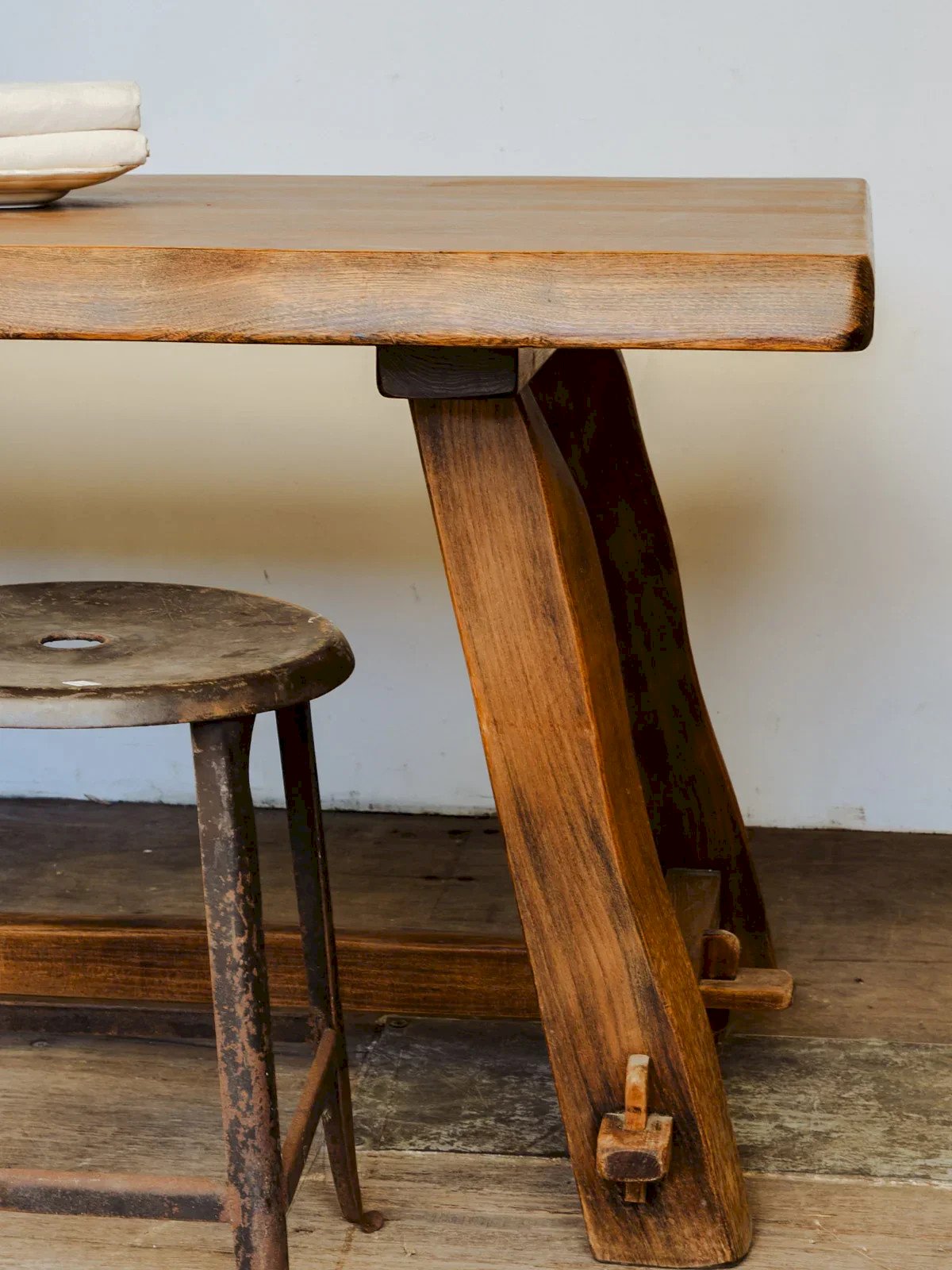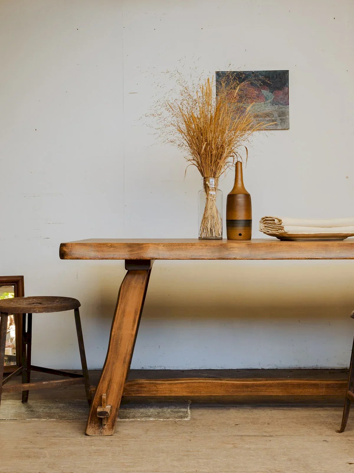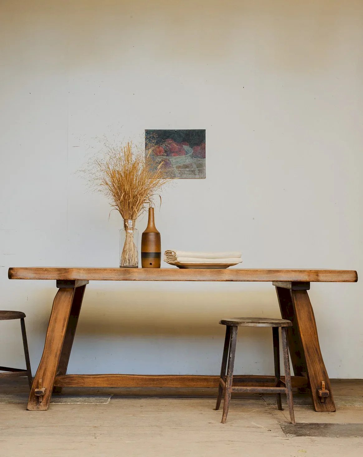 Discover the Olivali Hanninen table, a true tribute to the art of country living. Made of solid oak, it offers timeless robustness and elegance, perfect for accommodating up to 10 guests. Its warm and authentic design will enhance your living space while creating a friendly and welcoming atmosphere for your family meals or gatherings with friends. Bring a touch of nature to your interior with this unique piece that combines charm and functionality. Length: 180 cm Width: 90 cm Height: 75 cm Height under the table top: 70 cm Condition: Used: Item has been used. Item shows some signs of superficial wear, fully operational and functioning correctly. It may be a display model or an item returned to the store after a short period of use, with possible imperfections. Brand: Debongout Type: Vintage product Material: Oak Style: Country Customized: Dining tables