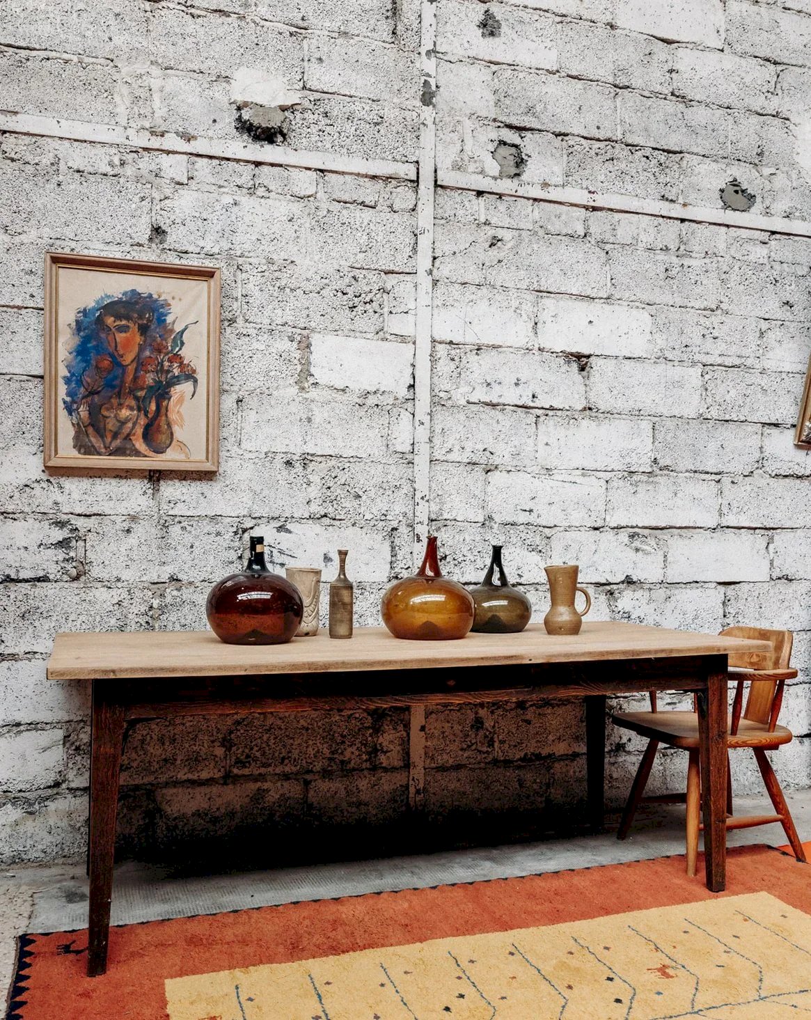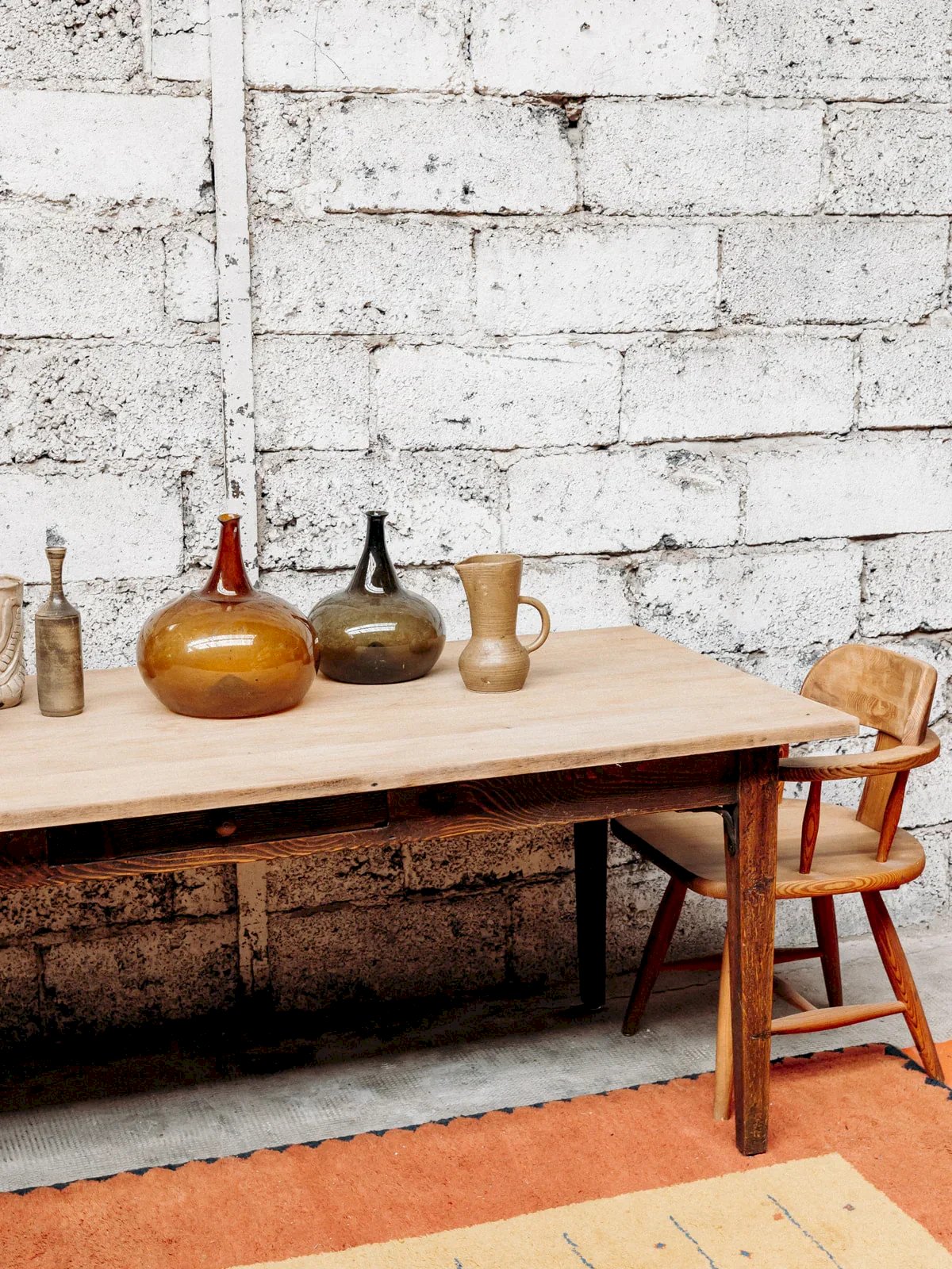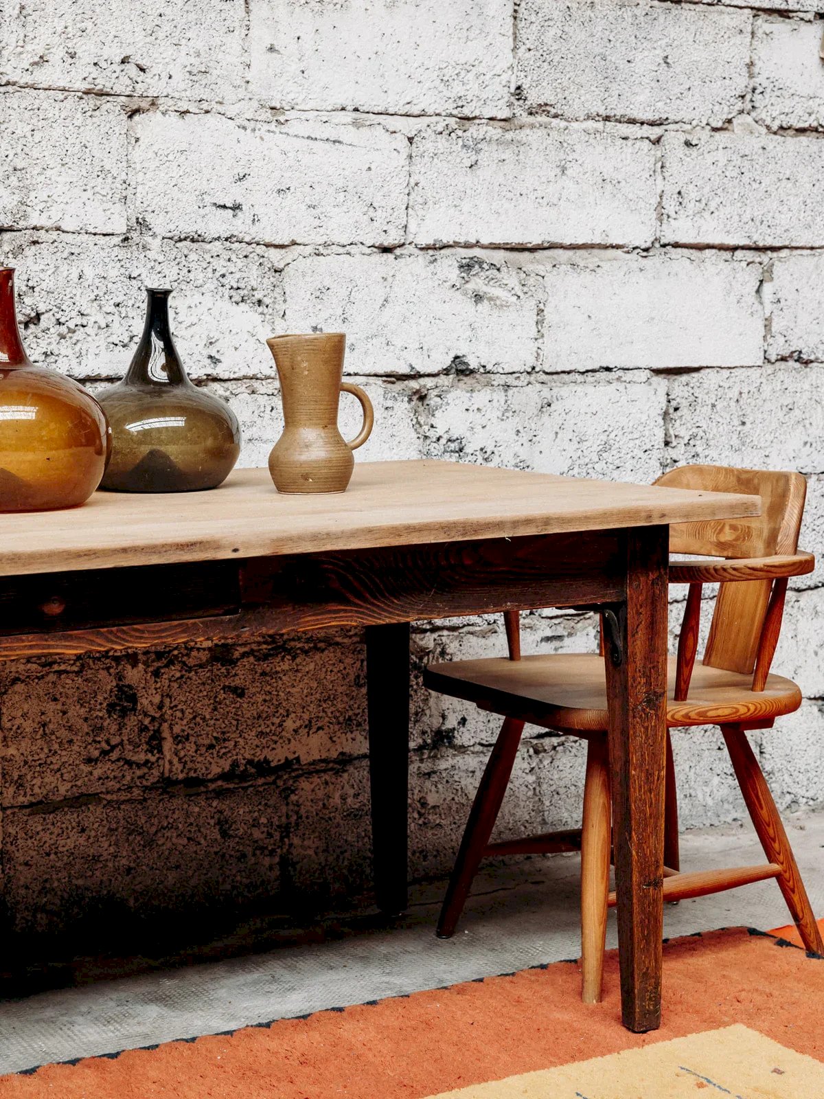 Discover this authentic bicolored farmhouse table, with a light wood top that elegantly contrasts with a structure featuring dark straight legs. It combines rustic charm with modern simplicity, perfect for a cozy kitchen or dining room. A small integrated drawer offers practical and discreet storage space. Solid and warm, this piece will add character to your interior. A revisited classic not to be missed! Length: 200 cm Height: 74 cm Height under the top: 60 cm Drawer height: 6 cm Depth: 86 cm A brief history of the farmhouse table The farmhouse table is a timeless design that has long adorned dining rooms. This wooden dining table, inspired by autumn, is a must-have for vintage and bohemian decor. Classic with bright and vibrant wood tones and a raw look, it is especially chosen for its large size, solid appearance, and drawers placed underneath the top. The large farmhouse table is an essential element of all family gatherings! Condition: Used: Item that has been used. Item showing some superficial signs of wear, ... Used: Item that has been used. Item showing some superficial signs of wear, fully operational and functioning correctly. It may be a demonstration model or an item returned to the store after a short period of use, with possible imperfections. Brand: Debongout Type: Thrifted product Material: Wood Style: Country Customizable: Dining tables