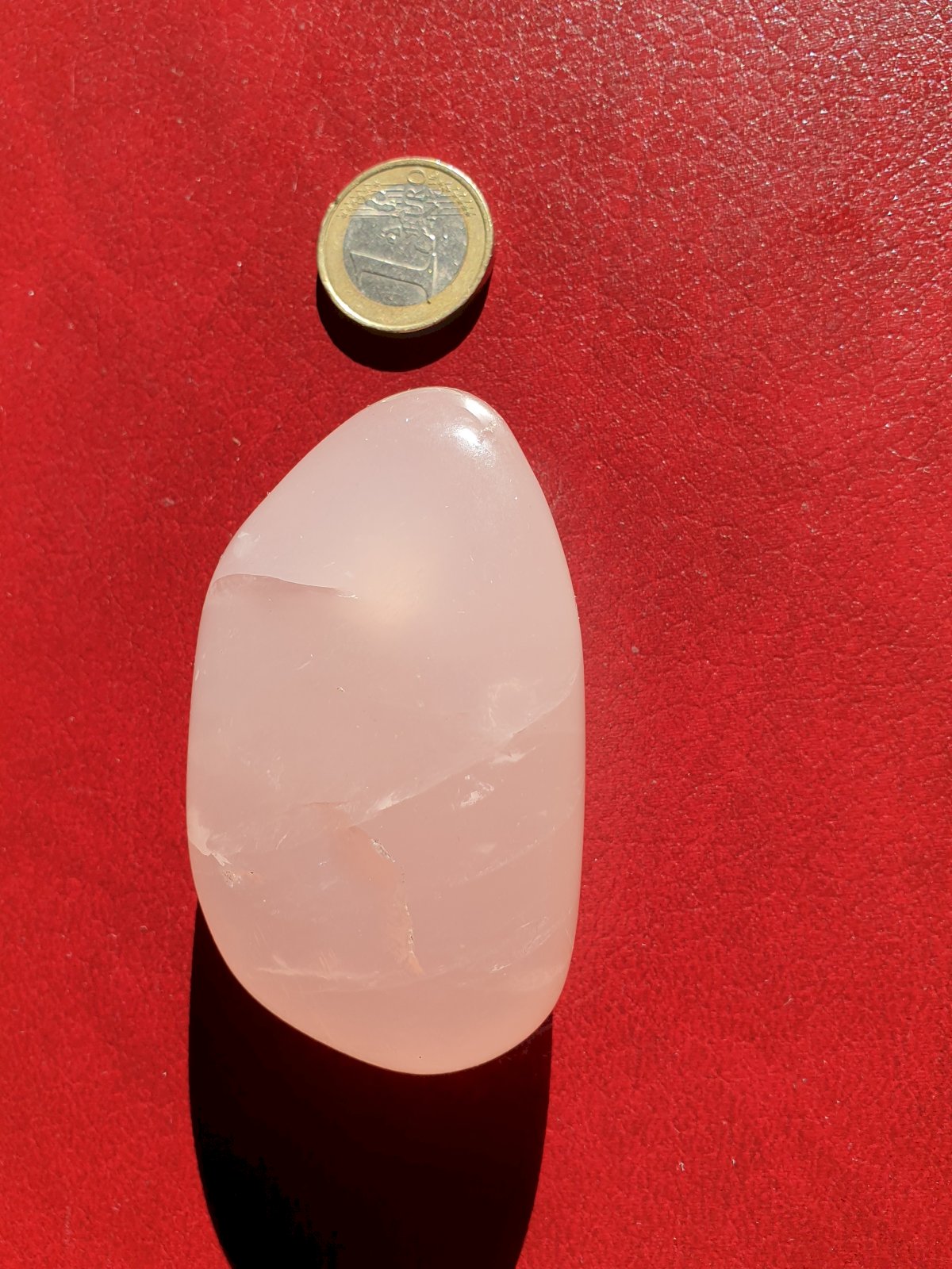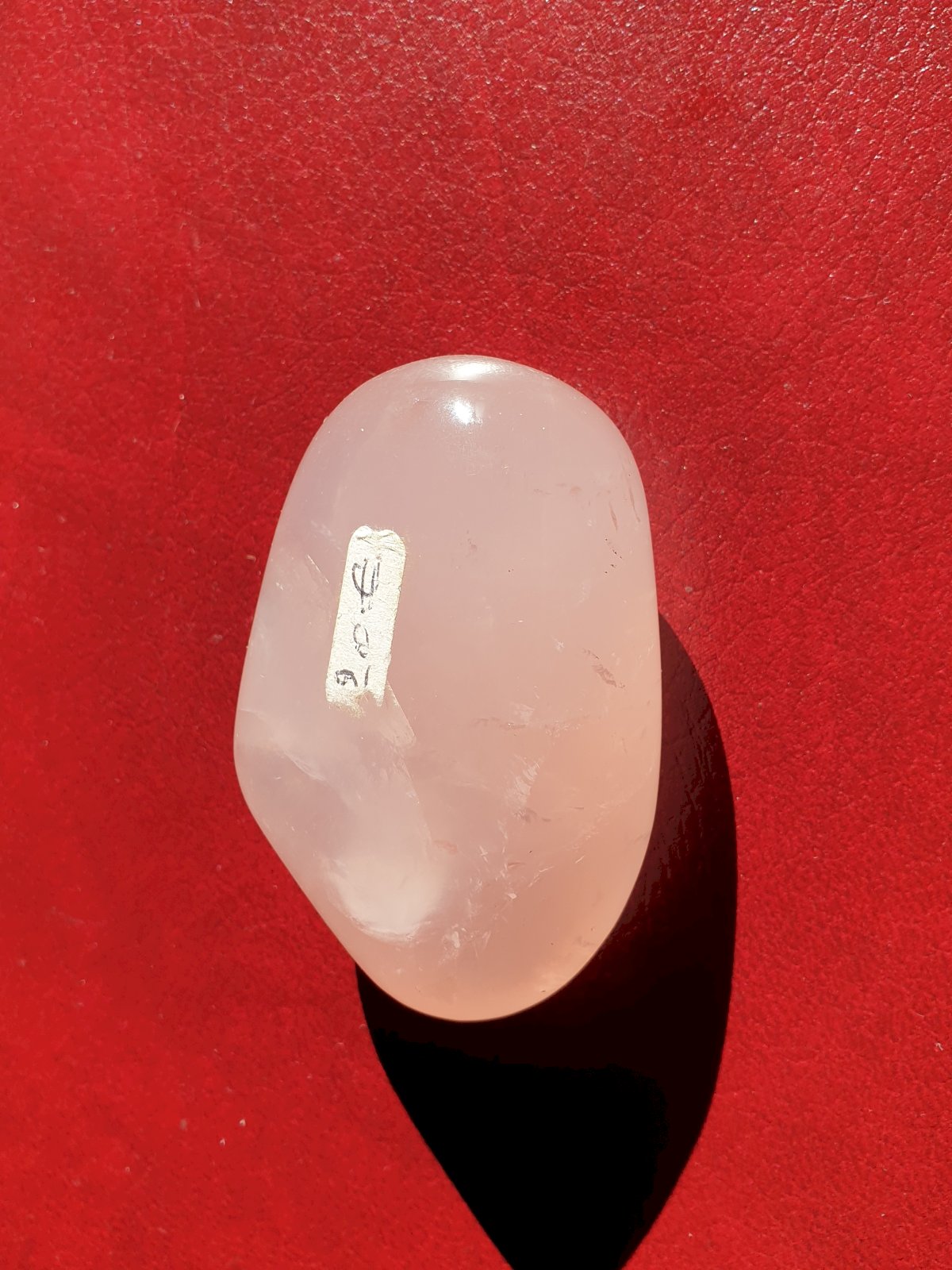 Rose quartz pebble, length 7.6 cm, weight 173 grams.