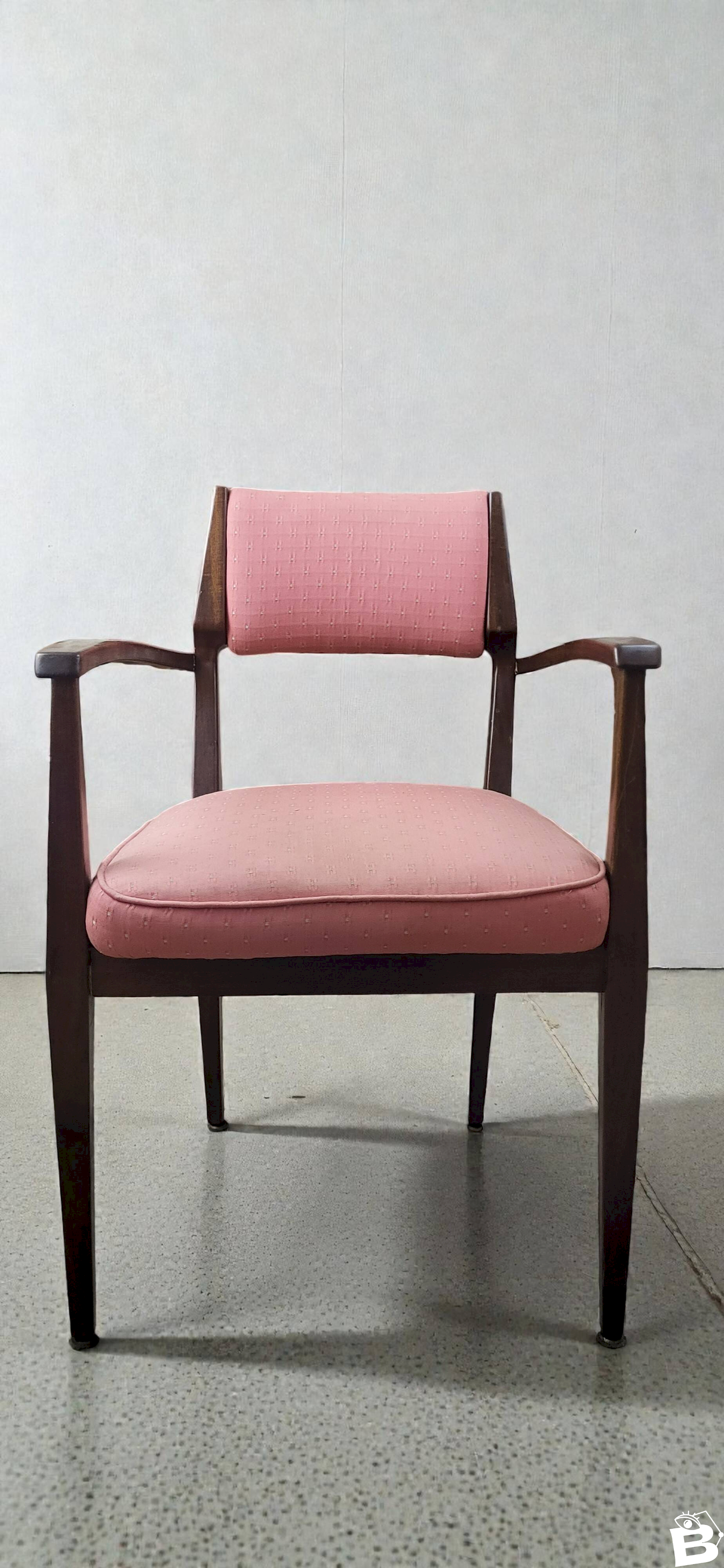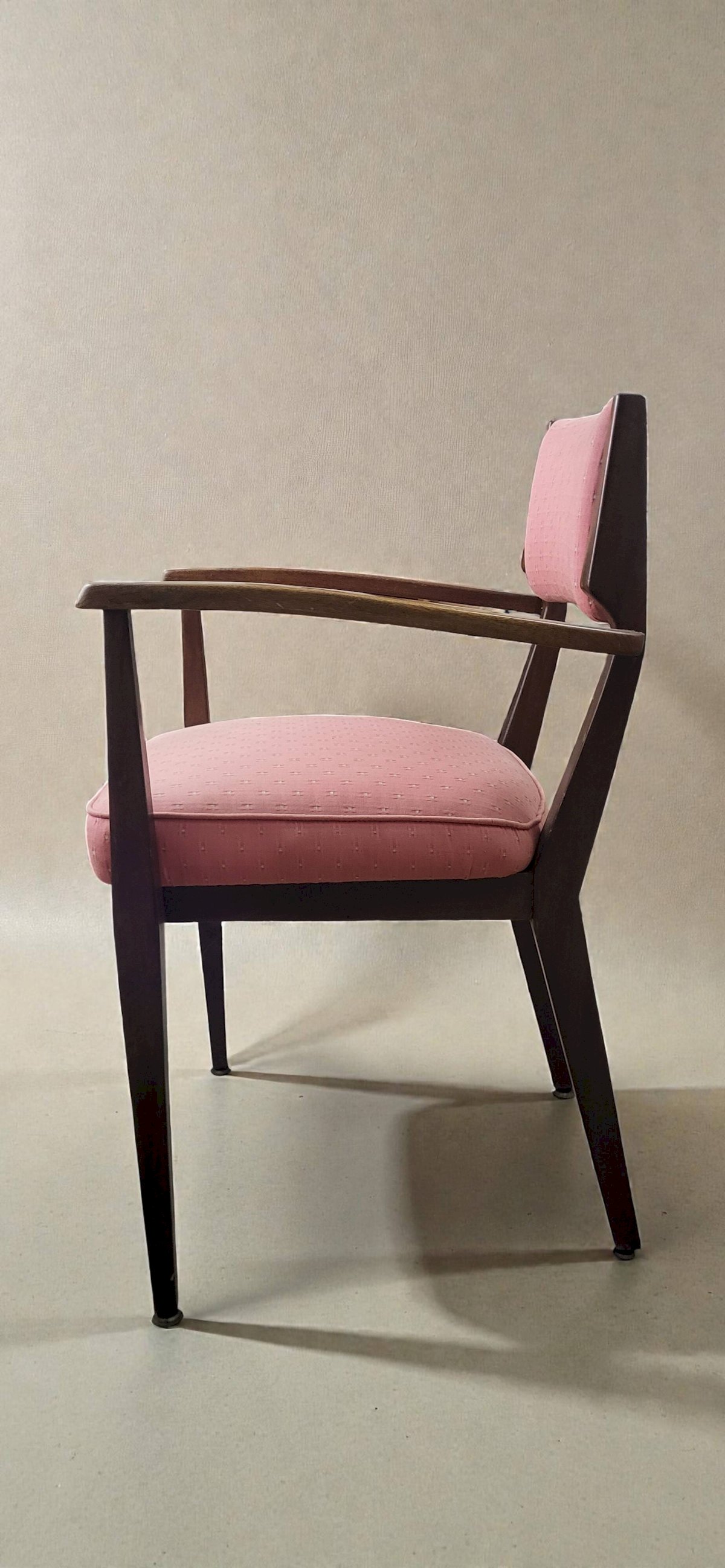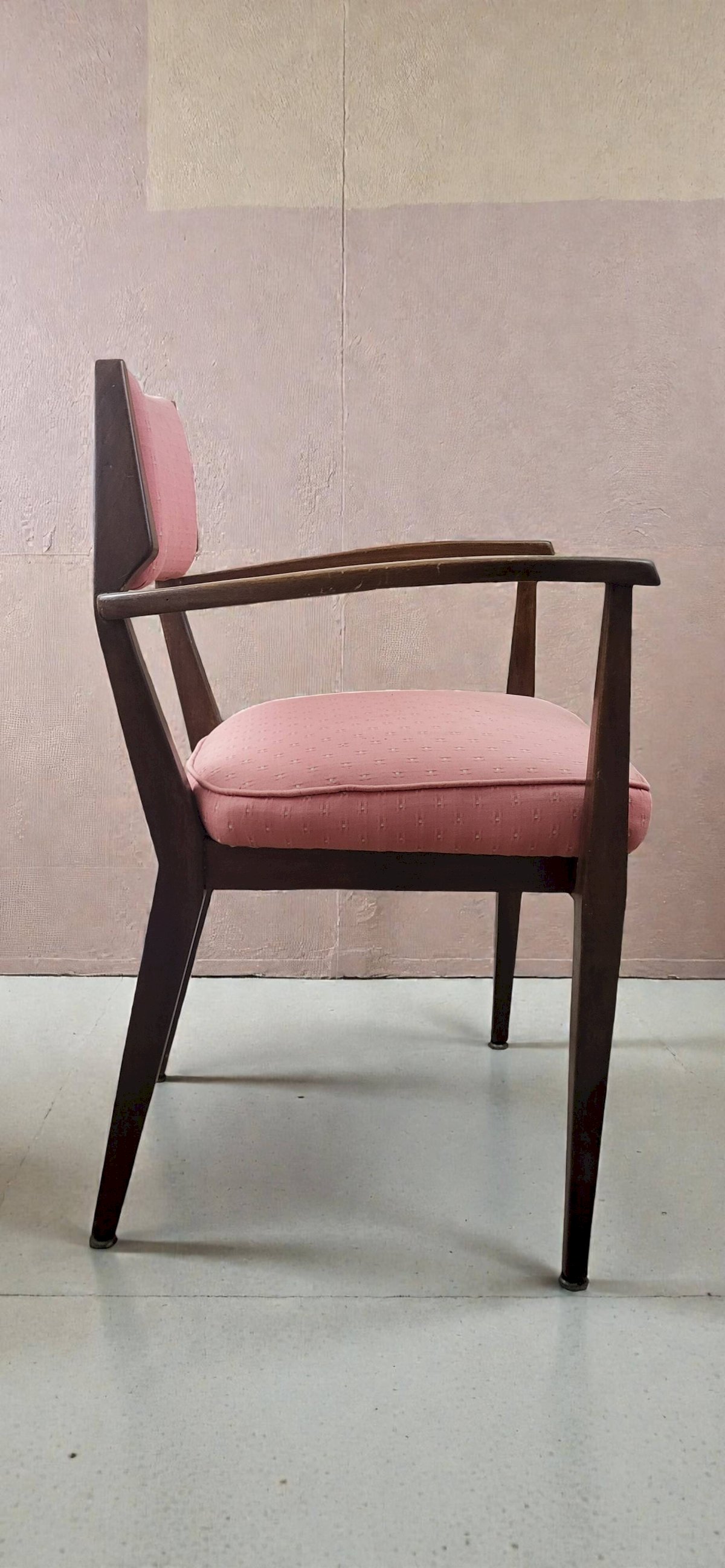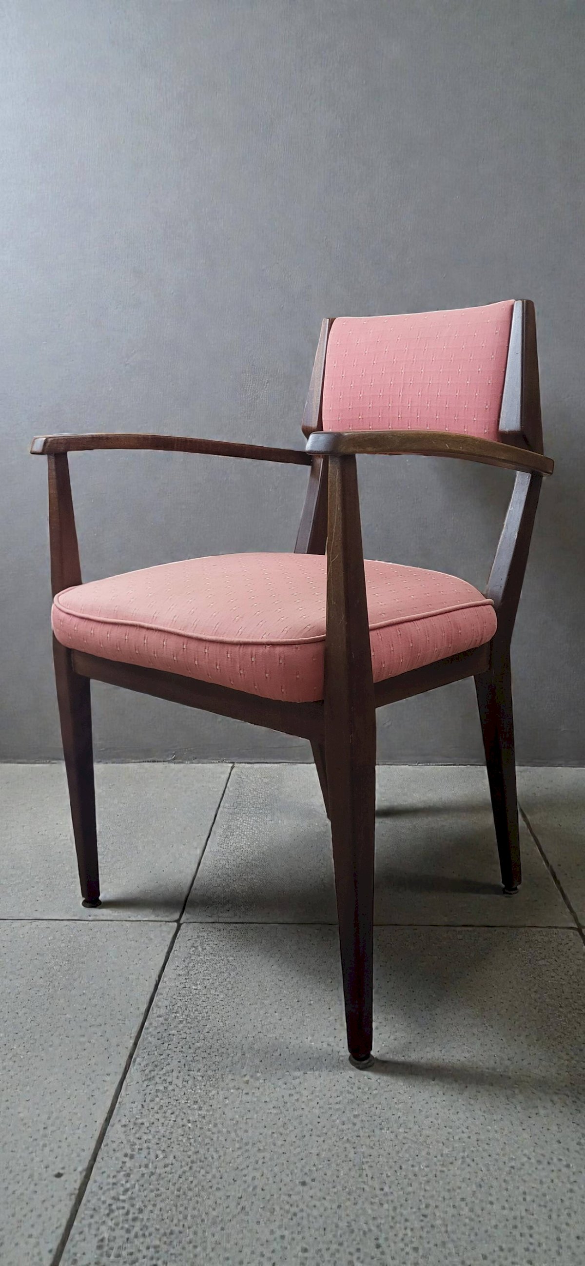 Rosewood armchair from the 1950s. In good condition with minimal signs of use and aging. The fabric is original, without any tears. Height 80 cm. Seat height 46-47 cm. Width with armrests 51.5 cm. Seat depth 42 cm.