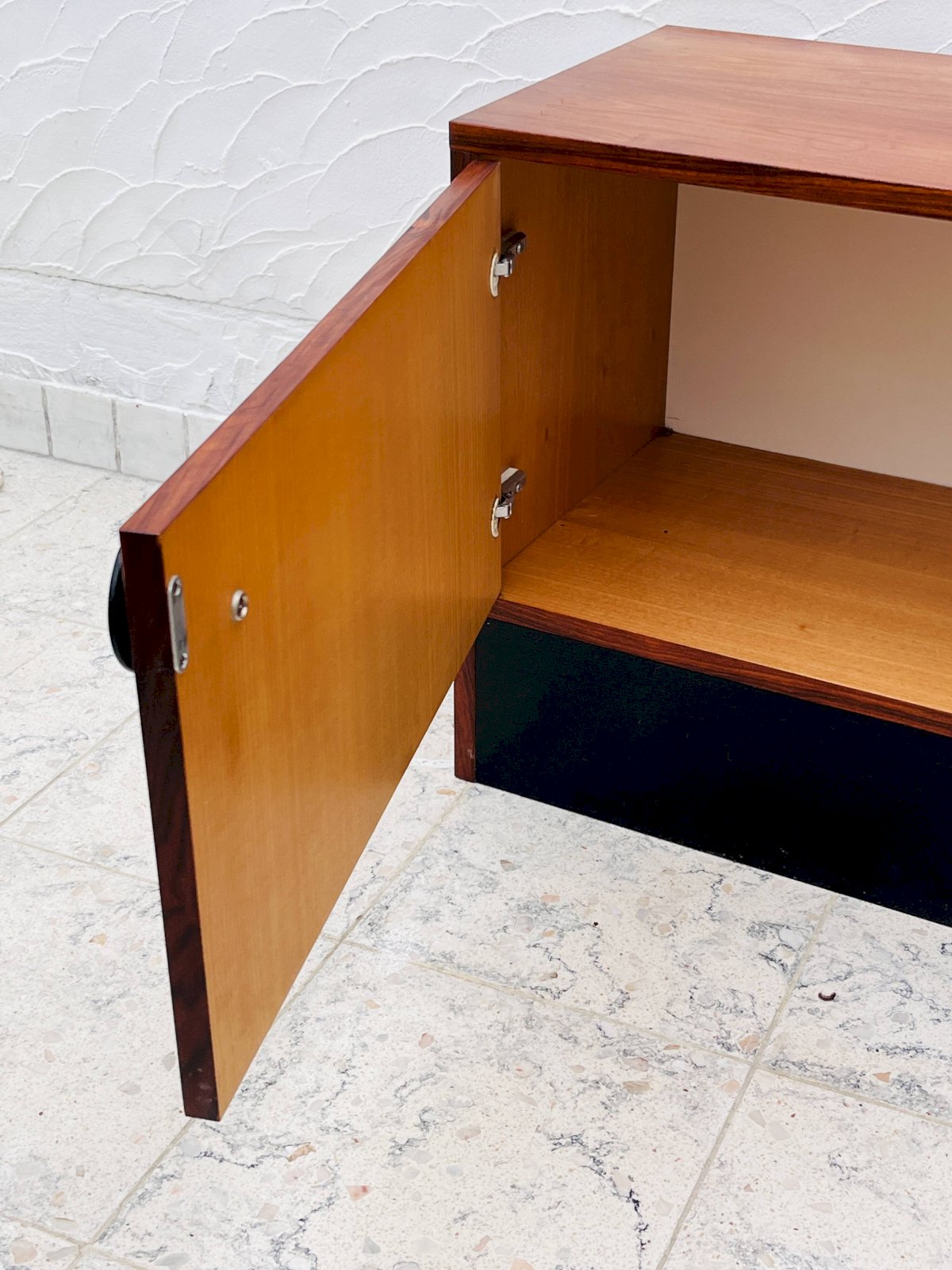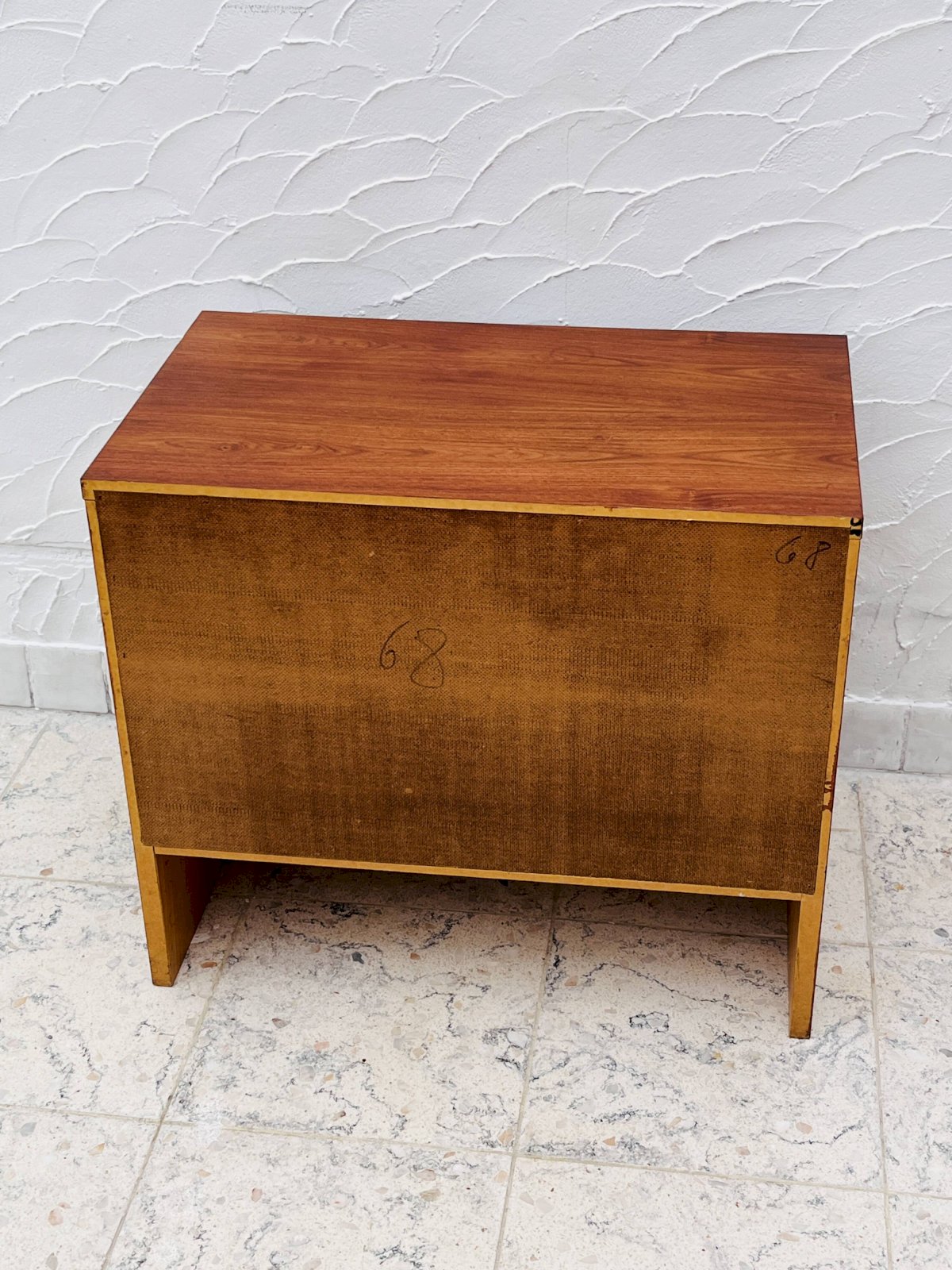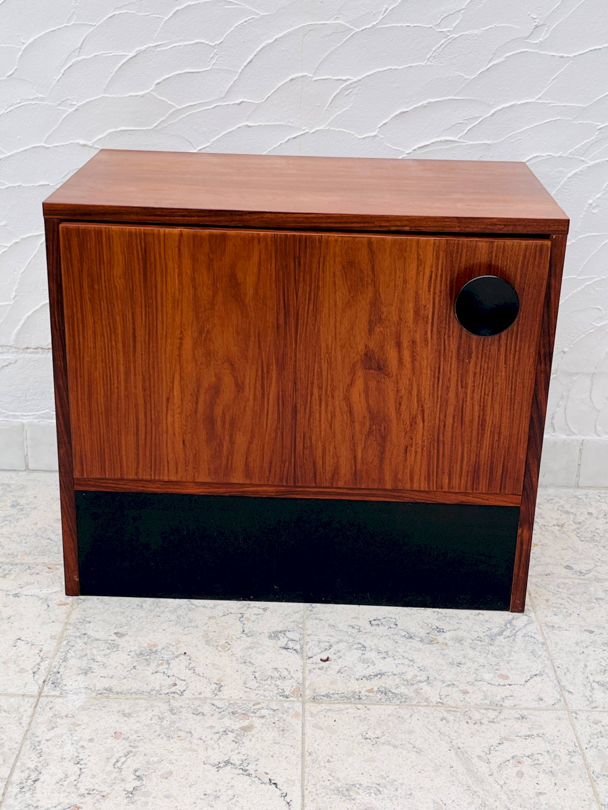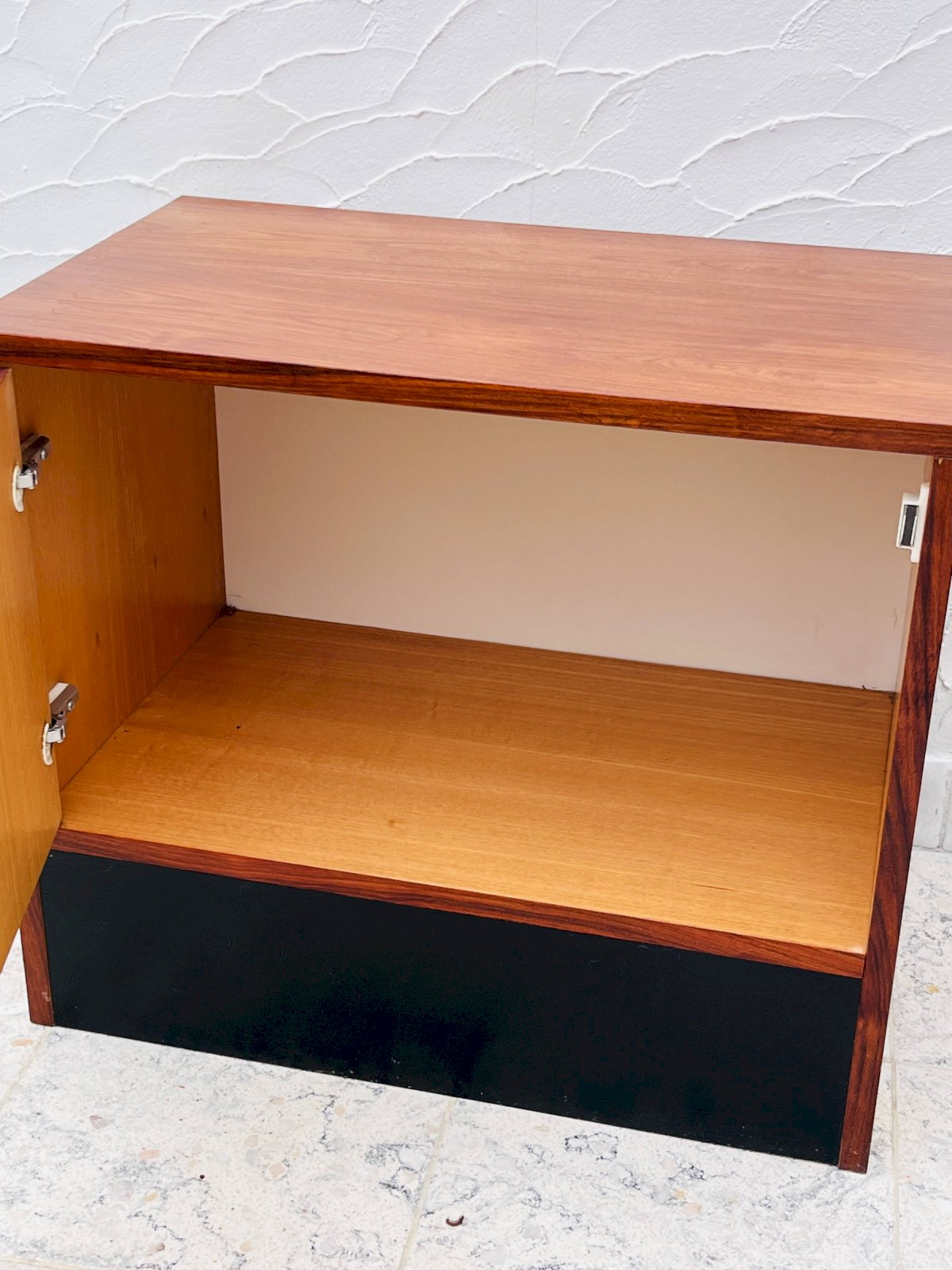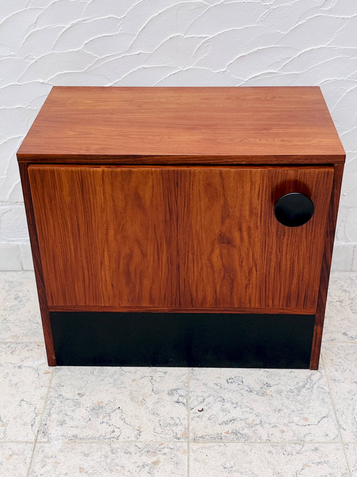 Discover this elegant rosewood nightstand, a piece that embodies the timeless charm of Mid Century Modern design.