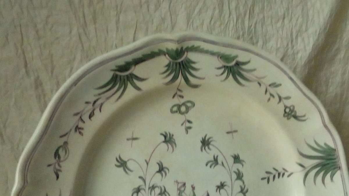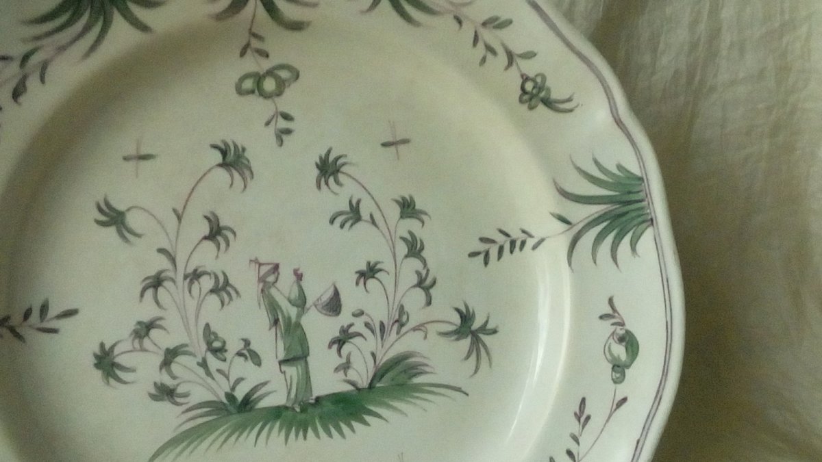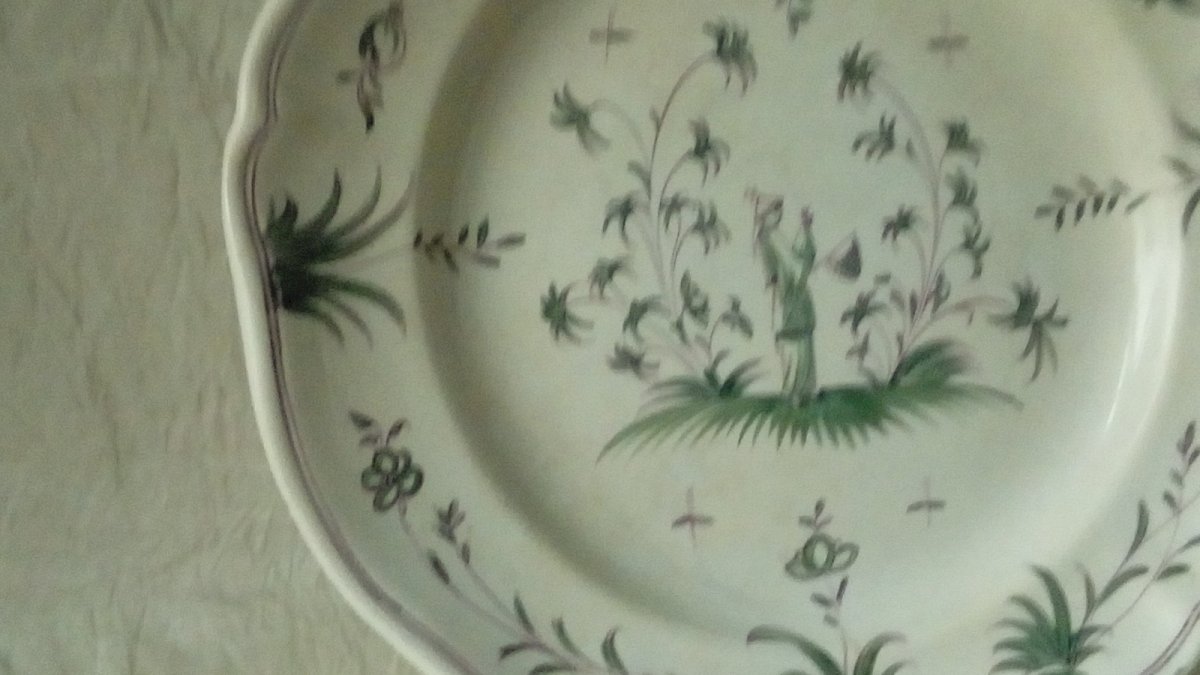 VERY BEAUTIFUL AND ANCIENT ROUND DISH LUNÉVILLE EARTHENWARE CHINESE DECOR OPAQUE FAIENCE DIAMETER 28 cm PRESENCE OF A FLEA AND YELLOWED BY TIME VISIBLE IN THE PHOTOS Country of origin: France