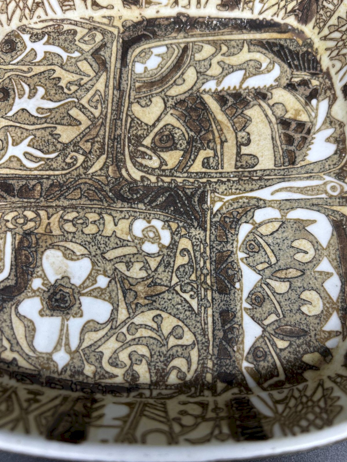 Nils Thorsson joined Royal Copenhagen as an apprentice in 1912 and graduated from the Danish Royal Academy in 1917. From 1949, he was the artistic director at Royal Copenhagen and also the artistic director of Alumina from 1928 to 1969. He is the originator of the four largest collections of Danish ceramics: SOLBERG from 1930, MARSELIS from 1950, TENERA from 1960, and BACA from 1964. He also produced many less-known and rarer art pieces in enamels. His pieces from the 1950s to 1970 are very popular works from Royal Copenhagen, now considered excellent examples of Scandinavian modernism. The motifs and designs of Nils Thorsson range from abstraction to naturalism, including geometric patterns.