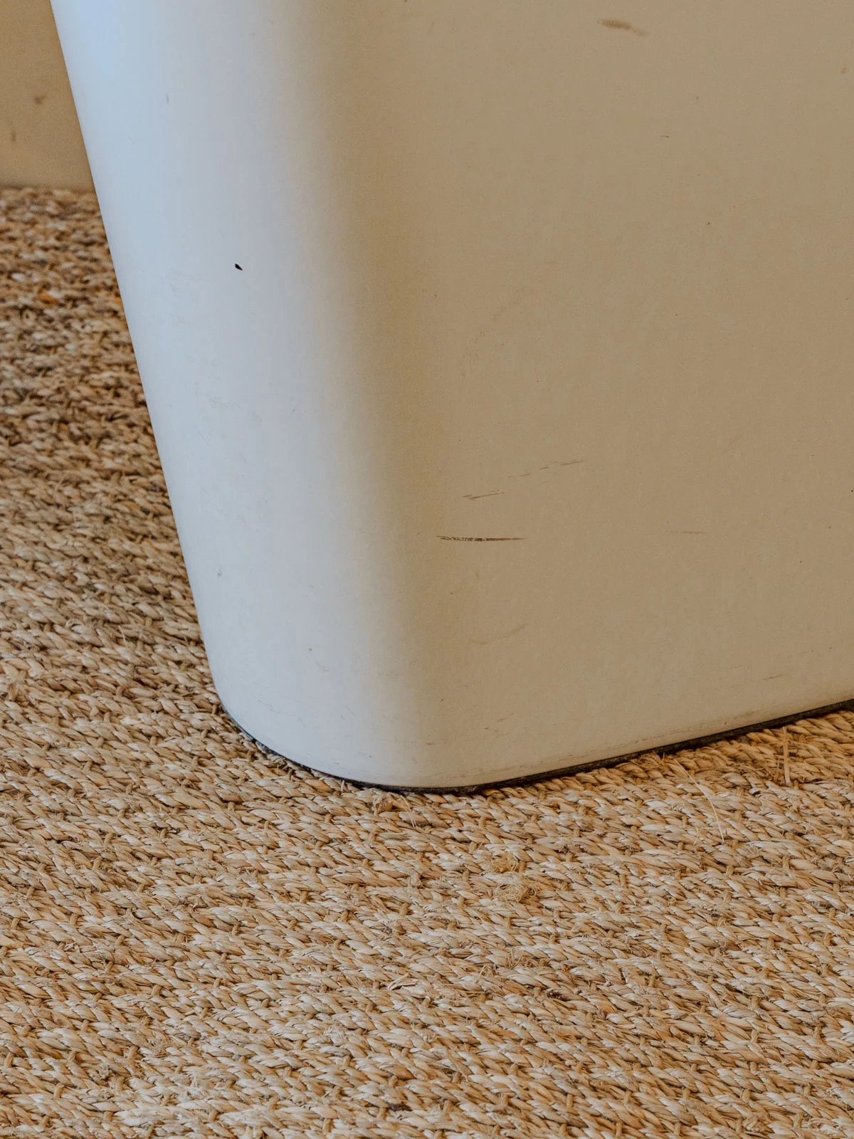 Add a contemporary touch with this white lacquered plexiglass side table, featuring a triangular shape that brings visual lightness and graphic lines to your interior. Its low silhouette and proportions make it ideal as a side table, a discreet support for a lamp, a cup, or a few books, perfect for small spaces. The smooth, shiny material diffuses a clean and bright atmosphere. Some signs of wear are present. Length: 44 cm Width: 43.5 cm Height: 41 cm Condition: Used: Item that has been used. Item showing some superficial signs of wear, fully operational and functioning properly. It may be a demonstration model or an item returned to the store after a short period of use. Any potential imperfections. Brand: Debongout Type: Vintage product Material: Plastic Custom: Side tables Style: Contemporary