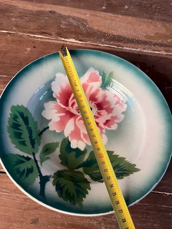 Magnificent Saint Amand hollow dish in antique pink and green earthenware with a peony decoration.