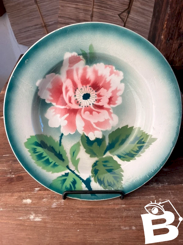 Antique hollow round serving dish iron earth Saint Amand and Hamage model Murier rouge