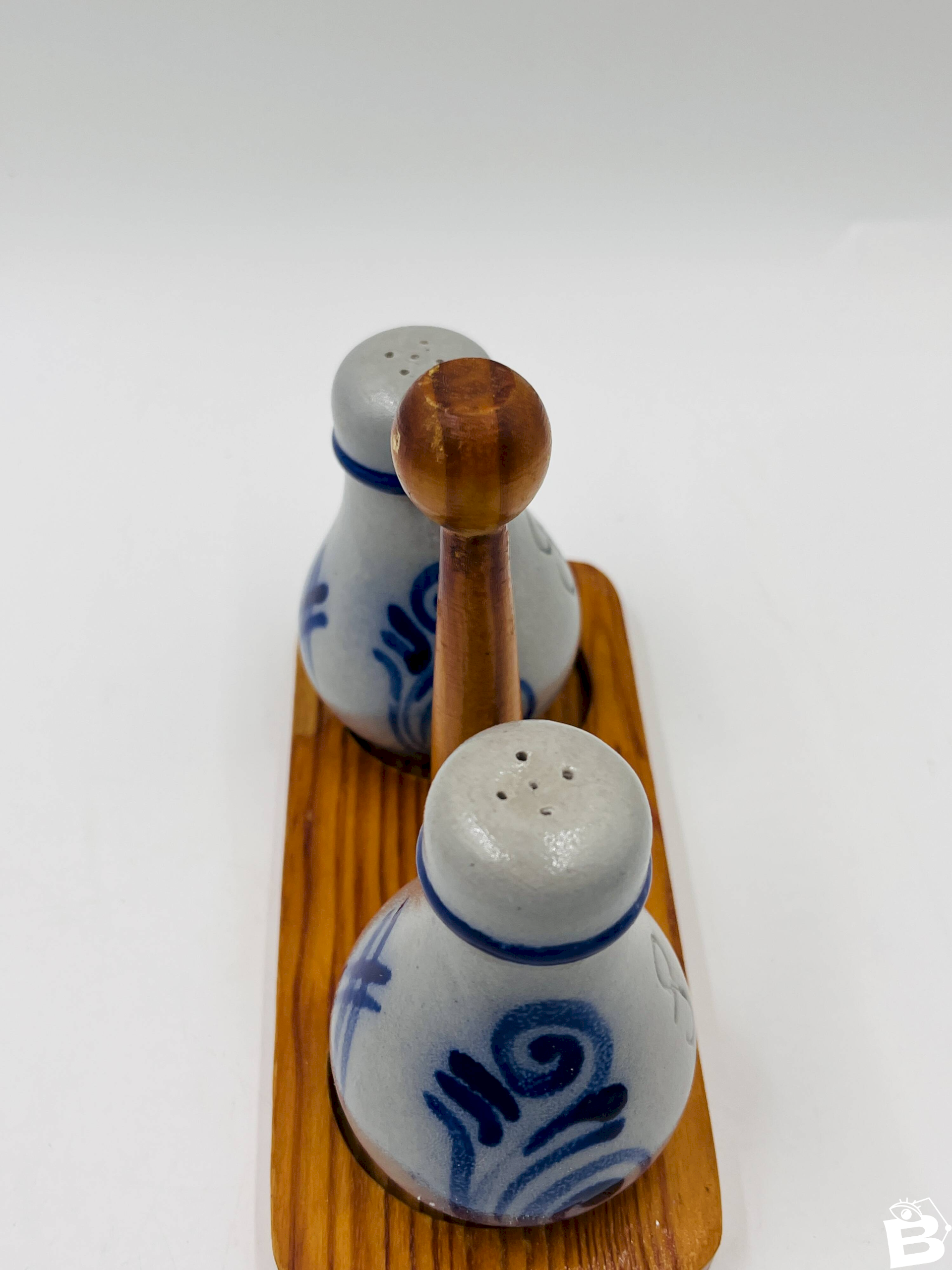 Feel free to contact us for more information. Dimensions: wooden stand: 16 x 7 x H 11 cm. salt and pepper shakers in stoneware: 5 x 5 x H 9 cm. L: 5 l: 5 H: 9