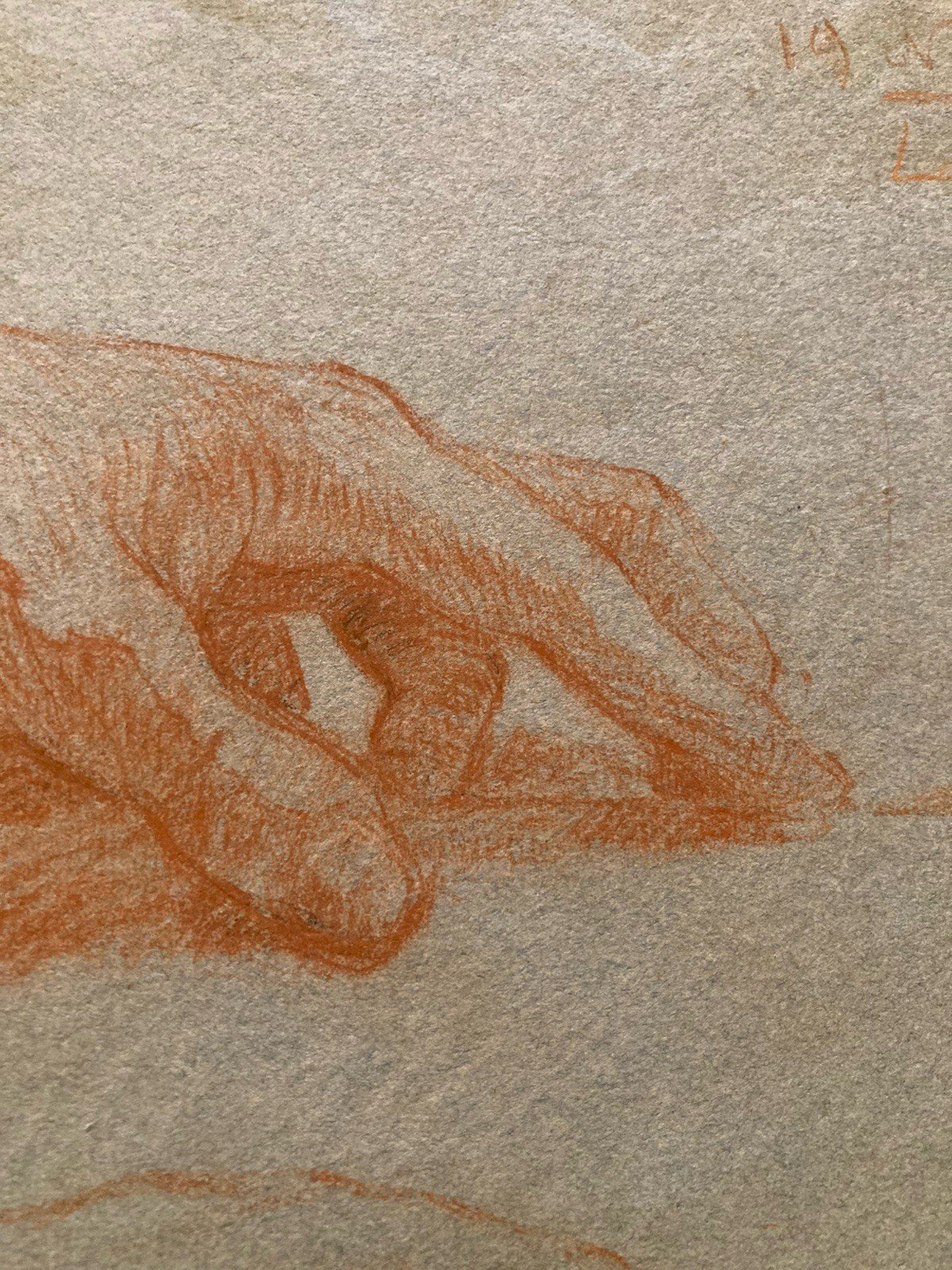 Sanguine Painting on Paper Ancient 19th Century Study Hand to Identify