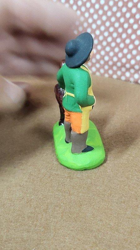 Beautiful santon for nativity scene made of painted terracotta by Marcel Carbonel. It is in very good condition, measuring 6.8 cm high, 4.7 cm wide, and 2.6 cm deep. Material: TERRA COTTA Theme: SANTON FOR NATIVITY SCENE Country of origin: France.