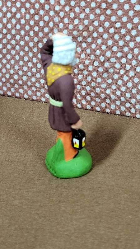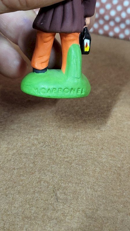 Beautiful figurine for a nativity scene made of painted terracotta by Marcel Carbonel. It is in very good condition, measuring 7.3 cm in height, 2.5 cm in depth, and 3 cm in width. Material: TERRACOTTA Theme: Nativity Country of origin: France.