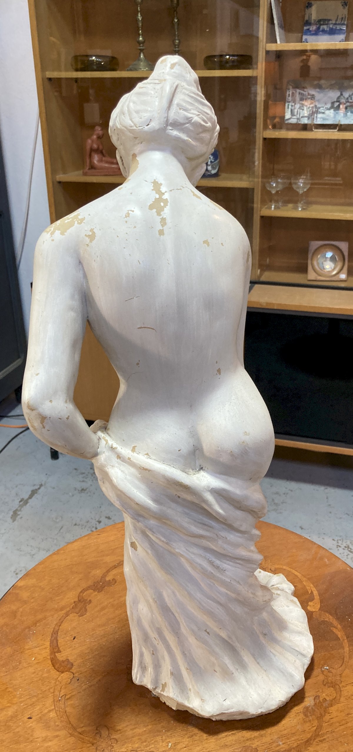 Sculpture, terracotta, woman stepping out of the bath, some缺失 (see photos), Height 55cm, base diameter 20cm, width approximately 20cm. No signature. Careful shipping guaranteed, by carrier only.
