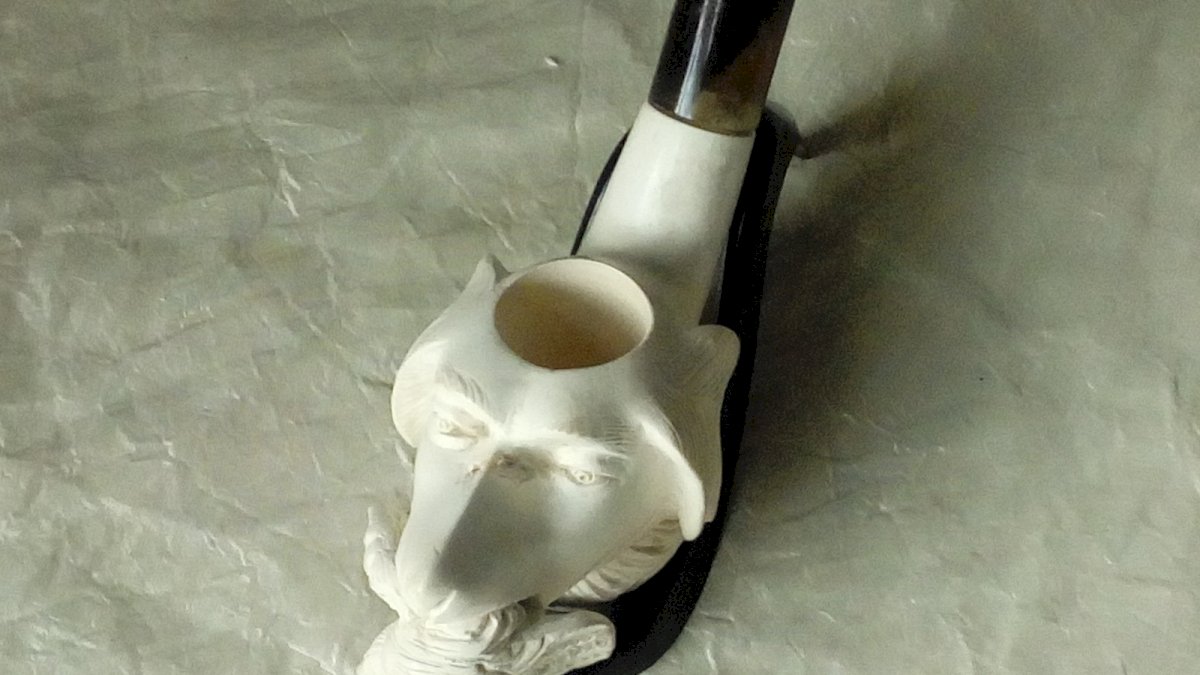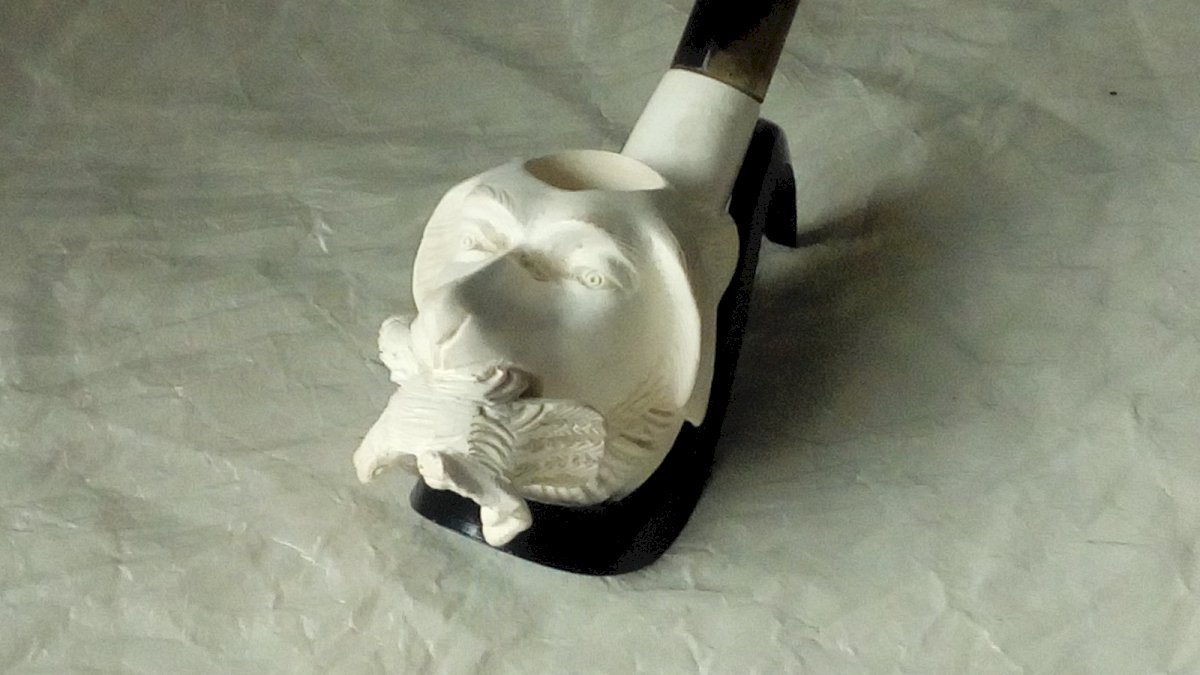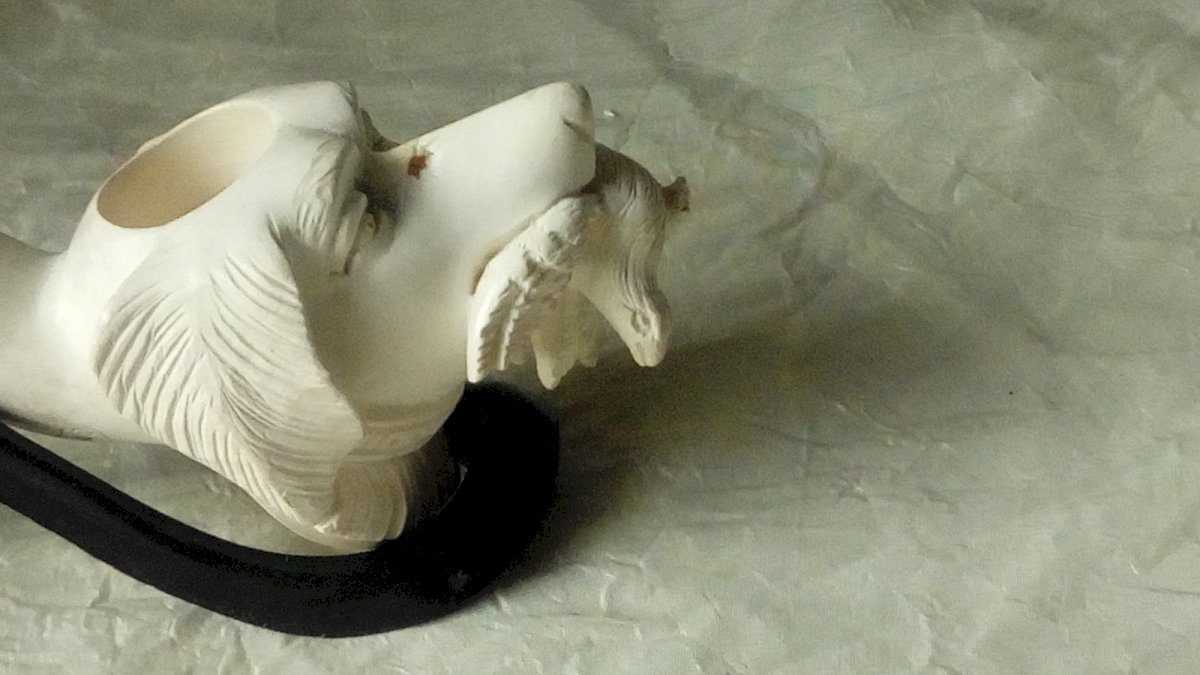 VERY BEAUTIFUL HORN AND BRIAR PIPE ON A DOG HEAD SUPPORT HOLDING ITS PREY LENGTH 16 cm WIDTH 5 cm Condition: Used Item has been used. Any imperfections. Era: Modern (1971 and after) Type: PIPE Country of manufacture: Unknown Material: Briar Style: Carved, Engraved