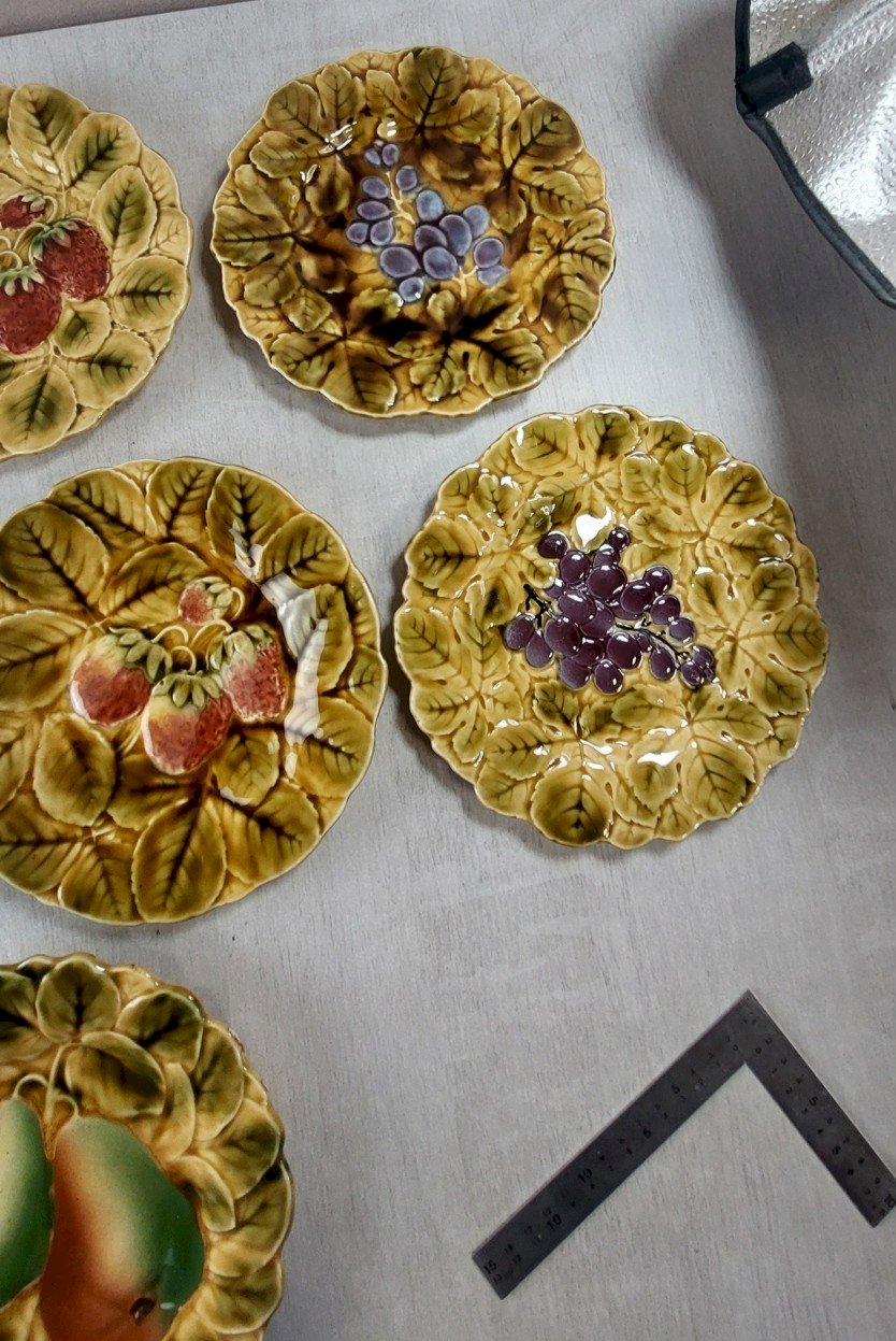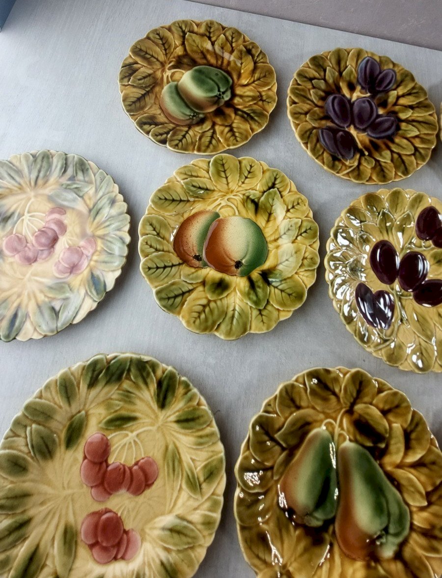Set of 12 dessert plates, fruit decor, in Sarreguemines slipware in good condition, no cracks or chips, some noticeable scratches marked Sarreguemines France diameter 19.4 cm see photos Check out my other items! Discount on shipping costs for bulk purchases Country of origin: France