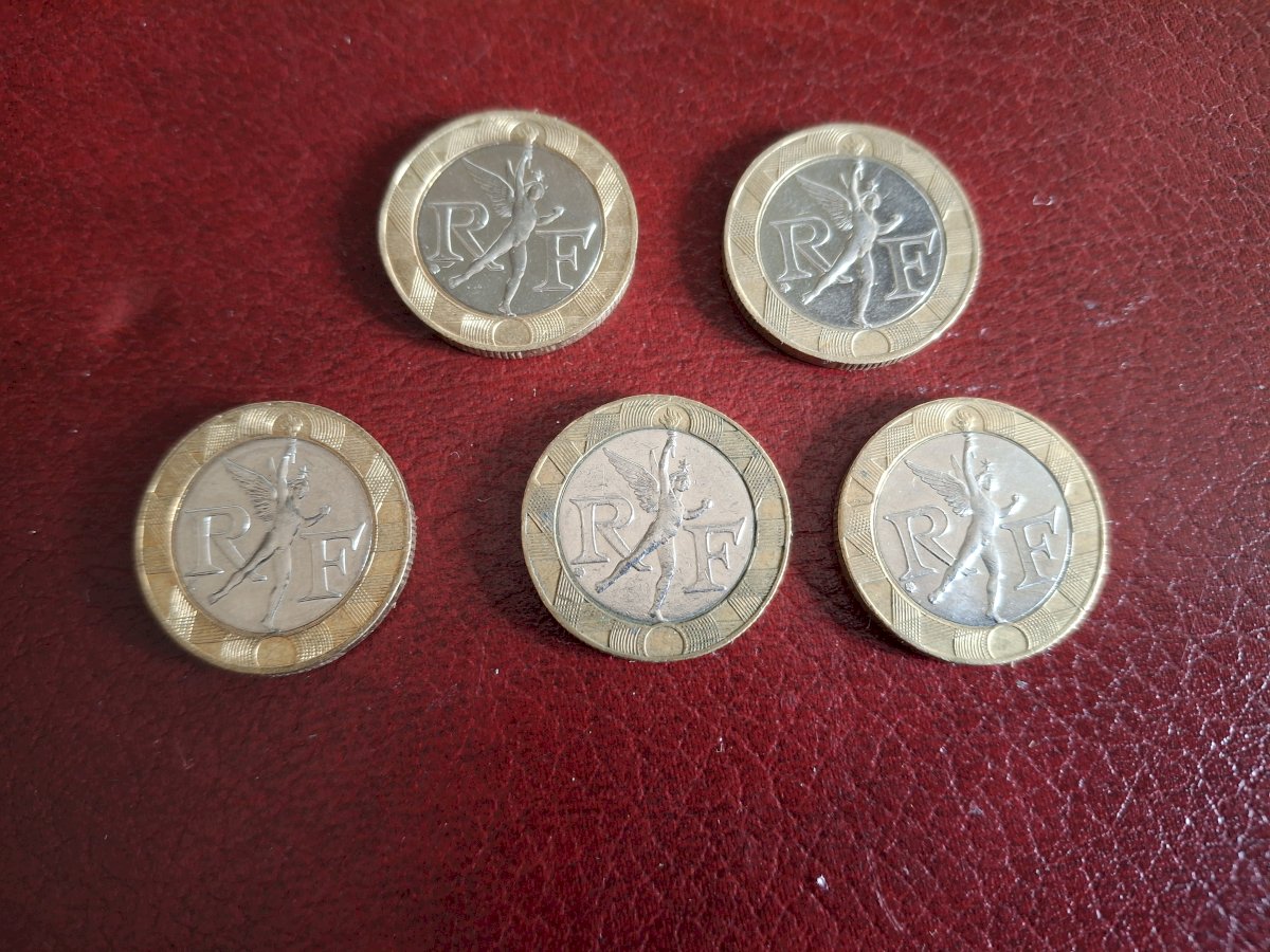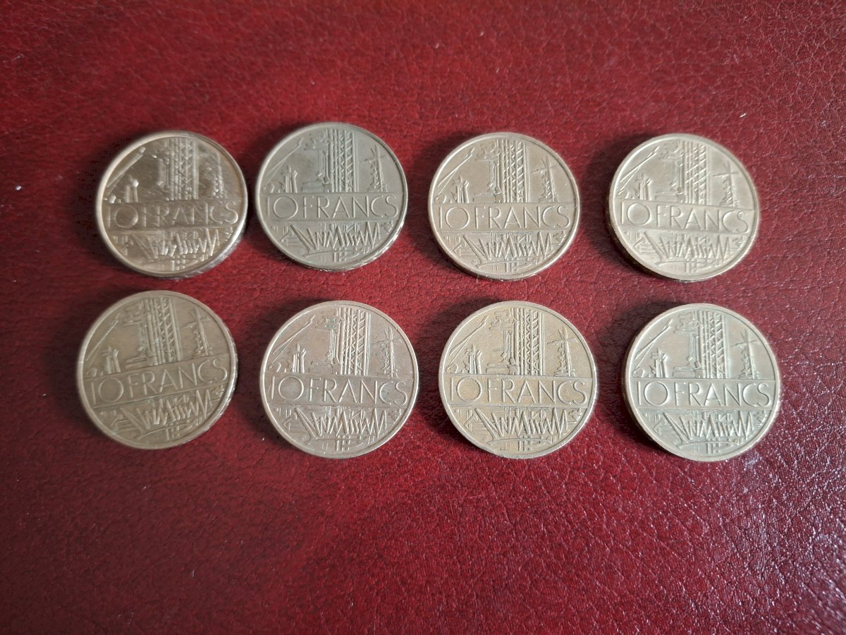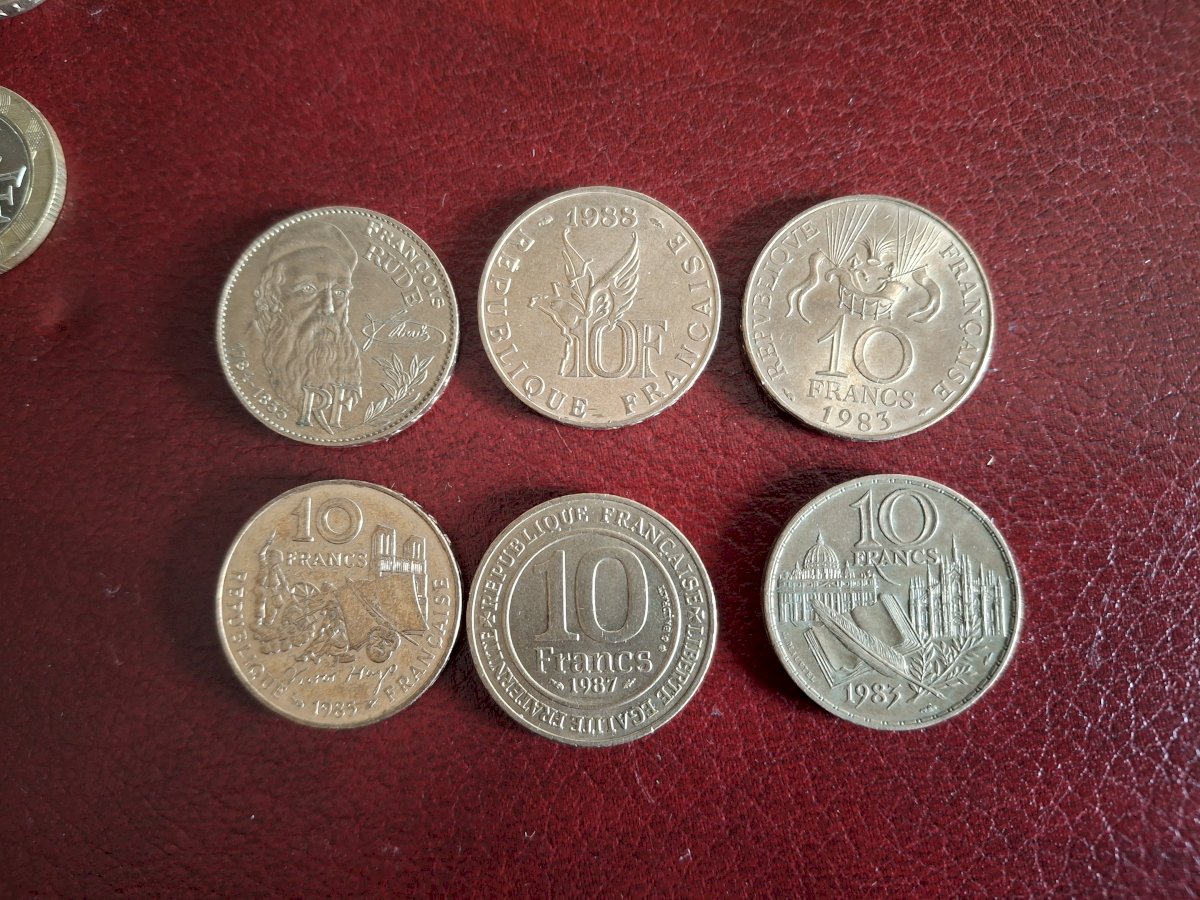 Lot of 19 different 10 franc coins from 1974 - 1992, including commemorative ones.