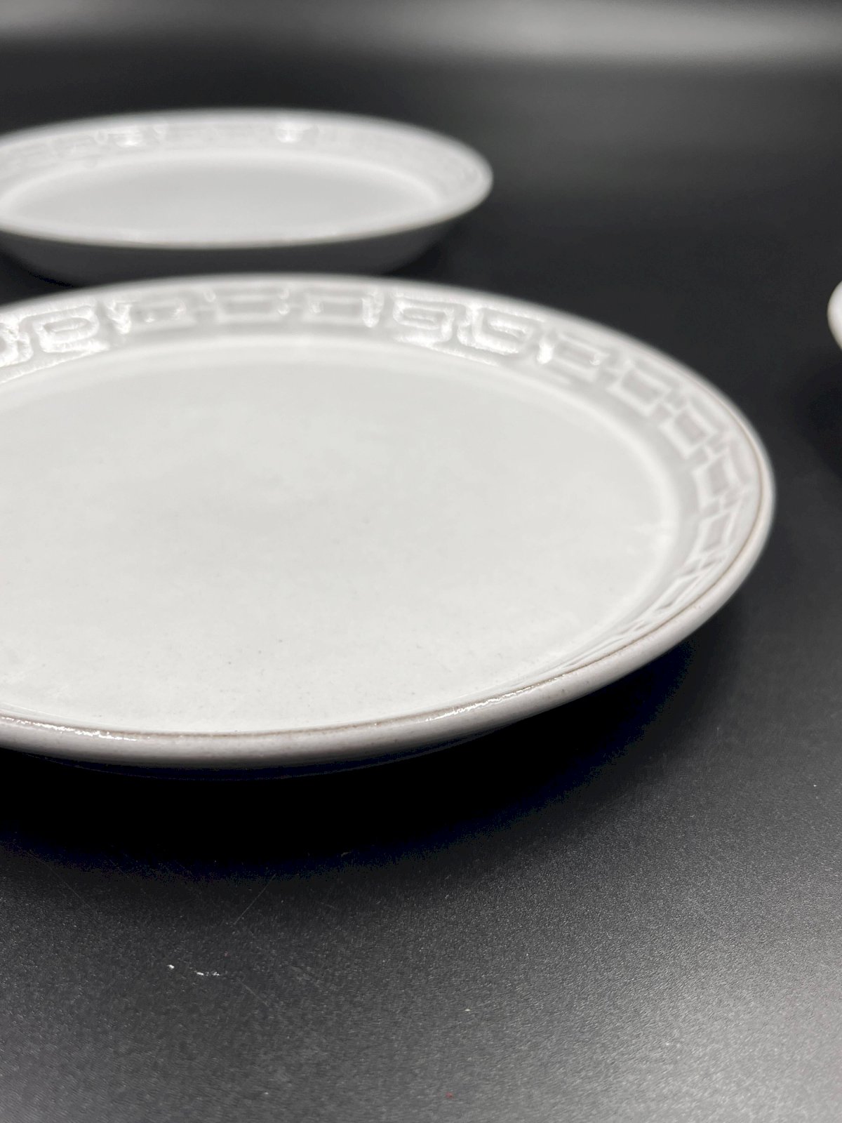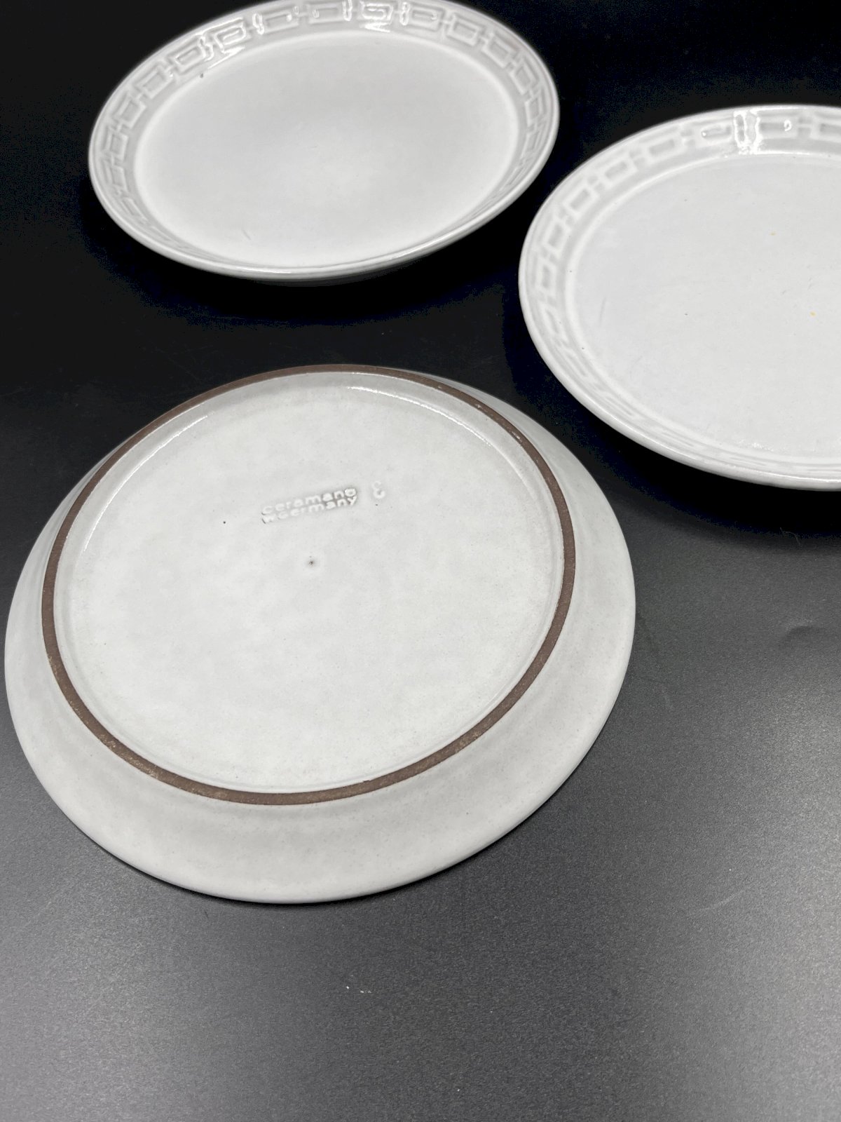 These brown and white ceramic pieces embody the timeless elegance of Mid Century Modern design, perfect for adding a touch of sophistication to your table. - Made from high-quality ceramic, these plates offer exceptional durability while maintaining a refined aesthetic. - The sleek design and subtle patterns on the rim bring a discreet elegance that harmoniously fits into any type of interior decor. - Ideal for special occasions or everyday use, these plates will enhance your culinary presentations. Feel free to enrich your collection with these unique pieces that combine functionality and style. Dimensions: 18 x 18 x H 2 cm. L: 18 l: 18 H: 2