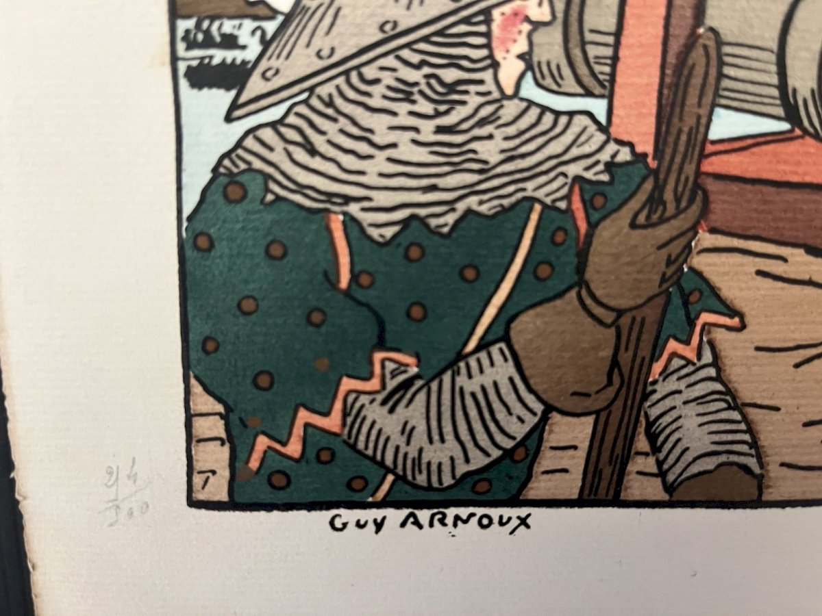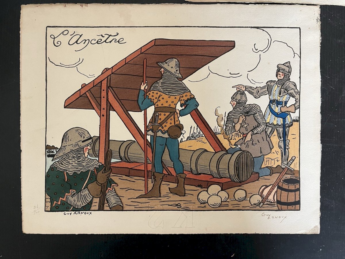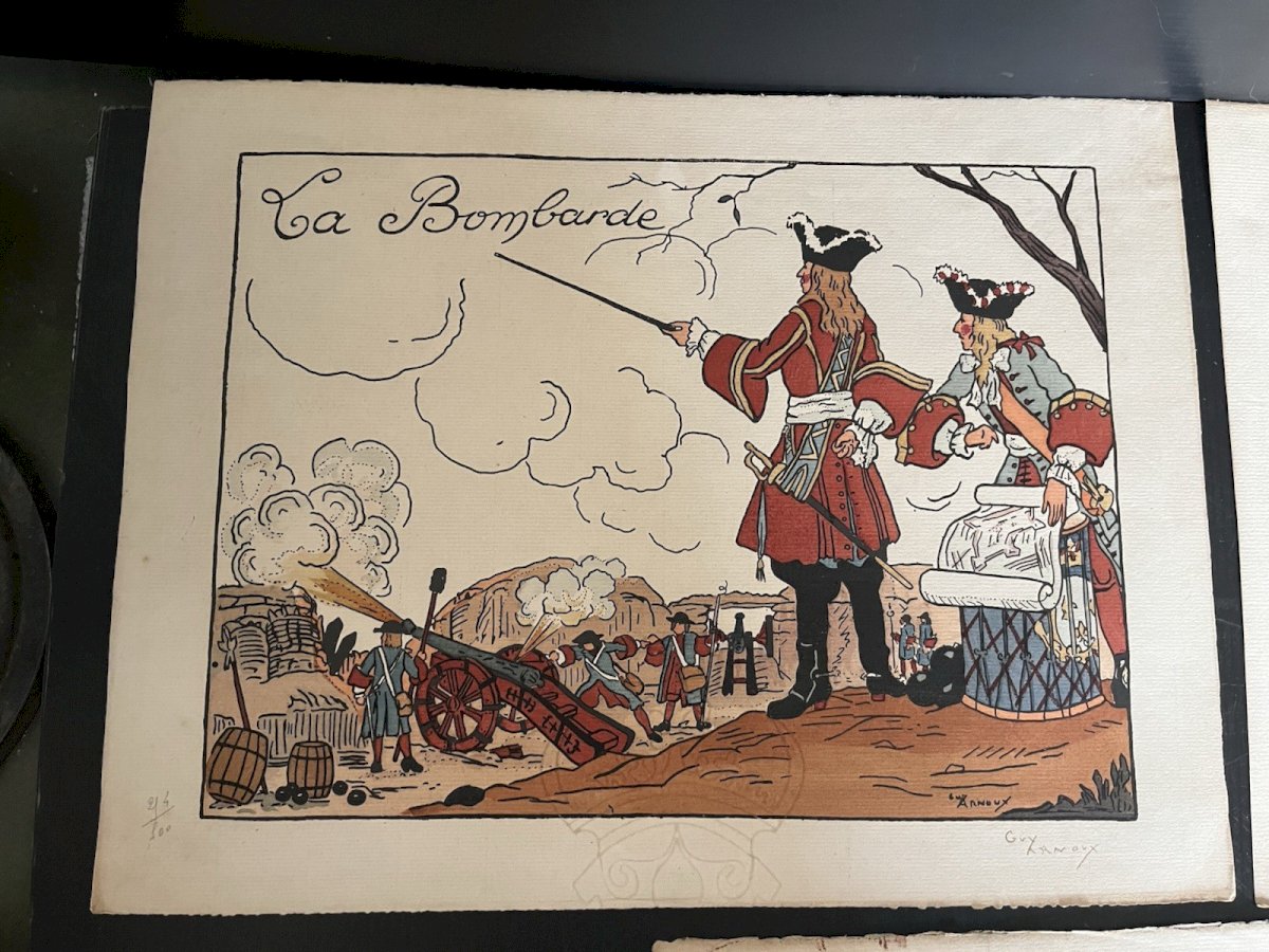 Set of 3 vintage lithographs by Guy Arnoux on the theme of war, numbered 214/300, condition visible in photos, note a missing part on the top of Gribeauval (see photos). Dimensions 27.50 x 36 cm. Please look at the above photos, which will also serve as a description. Careful and secure packaging via Mondial Relay or with the post to choose upon purchase. Thank you all and happy hunting in my shop. Returns accepted within 14 days from receipt, return in original packaging, in its initial condition, no refunds for items returned broken or lost by the carrier, return at the buyer's expense. Don't hesitate to add my shop to your favorites! Country of origin: France. Features: Signed. Theme: war.
