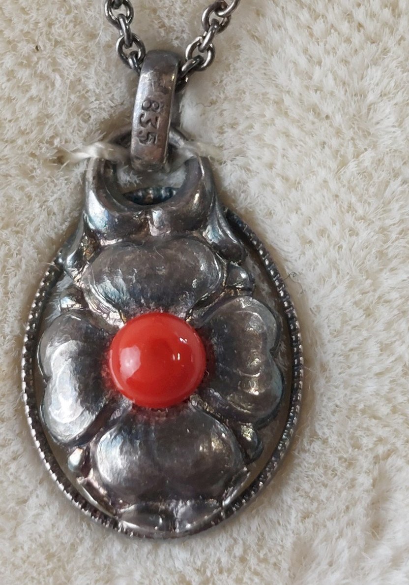 Set of 3 vintage necklaces + coral pendants, made of solid silver in good condition marked 835 pendant dimensions 1.3 cm X 1 cm see photos Check out my other items! Discount on shipping for bulk purchase Condition: Used Item has been worn. Any possible imperfections. Metal: silver