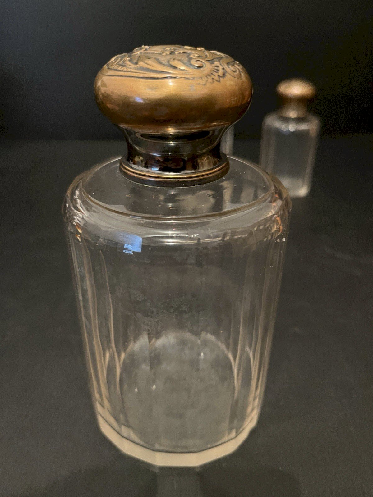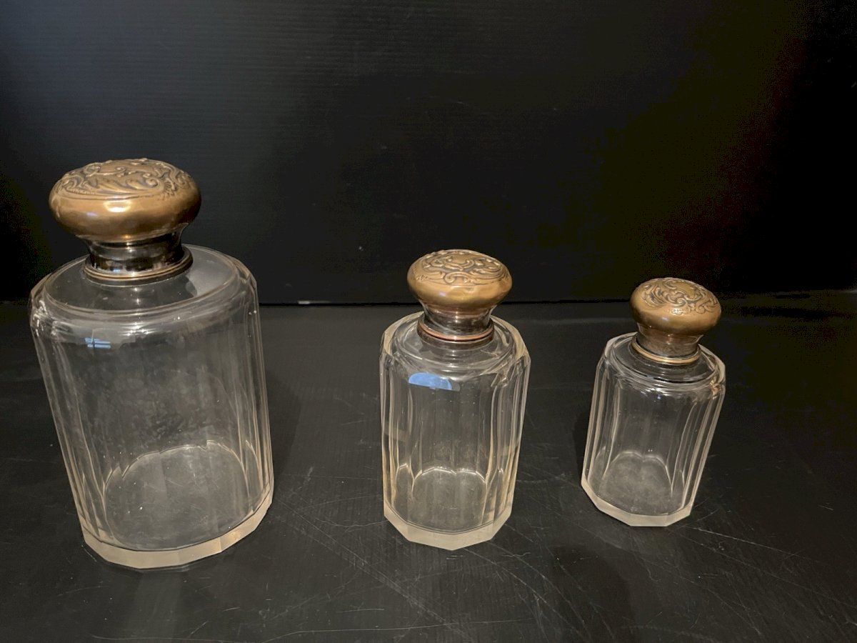 Set of 3 vintage perfume bottles: 1 large bottle height 15.50 cm, 1 medium bottle height 12.5 cm, 1 small bottle height 11 cm. Please note the presence of only one double glass stopper and 2 small dents on the stoppers, one on the medium and one on the small (see last photo). Look at the photos above which will also serve as a description. Careful and secure packaging with the option to send via post to be selected at the time of your purchase for the calculation of shipping costs. (Otherwise, classic Mondial Relay shipping). Thank you all and happy hunting in my shop. Returns are accepted within 14 days from receipt, return in its original packaging, in its initial condition, no refunds for items returned damaged or lost by the carrier, return shipping costs are the buyer's responsibility. Don't hesitate to add my shop to your favorites! Authenticity: Original Type: Perfume Origin: France Country of origin: France Sub-type: Bottle Style: Napoleon III