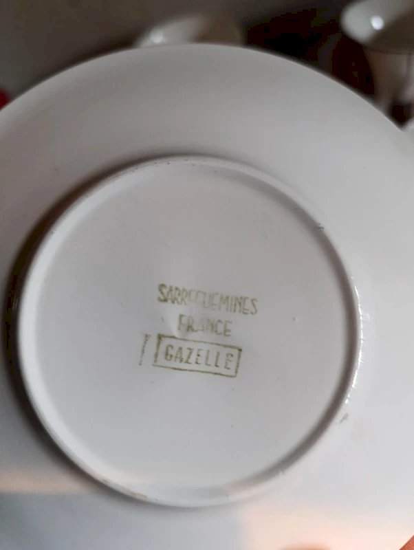set of 4 Sarreguemines cups and saucers "gazelle" model in good condition, just a few tiny chips, beautiful design