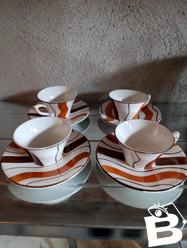 set of 4 cups and saucers Sarreguemines Gazelle model in good condition Orange/Brown