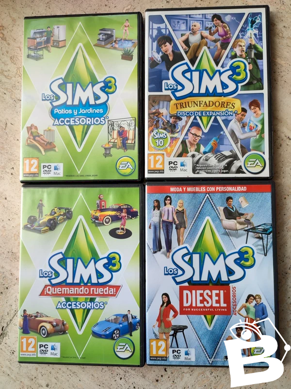 Set of 4 PC expansion games and accessories for The Sims 4 in Spanish. Black
