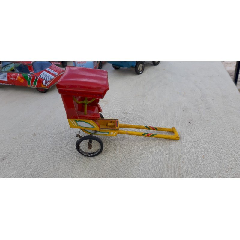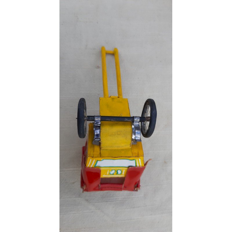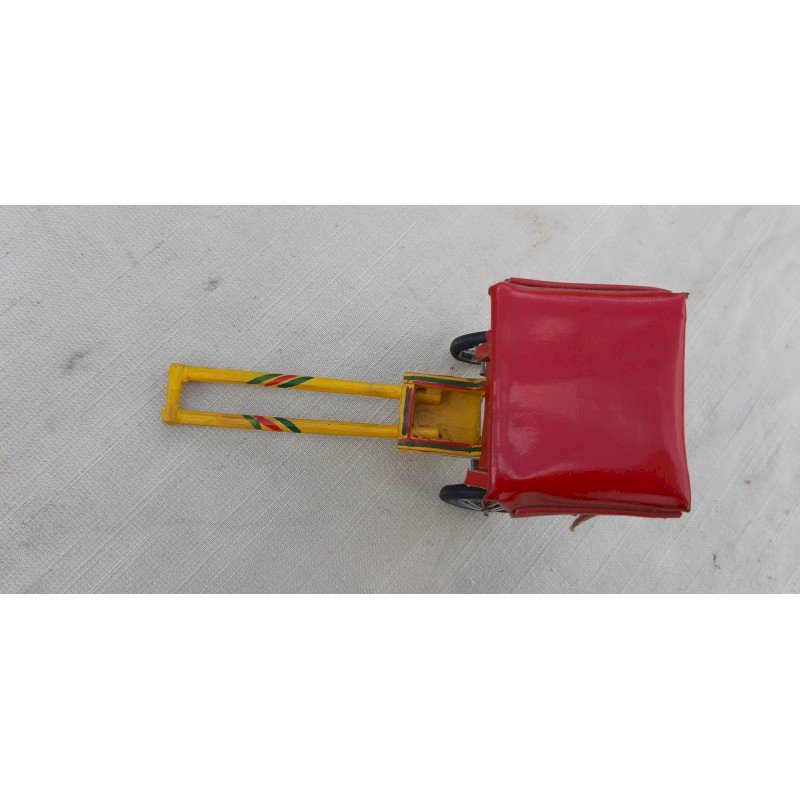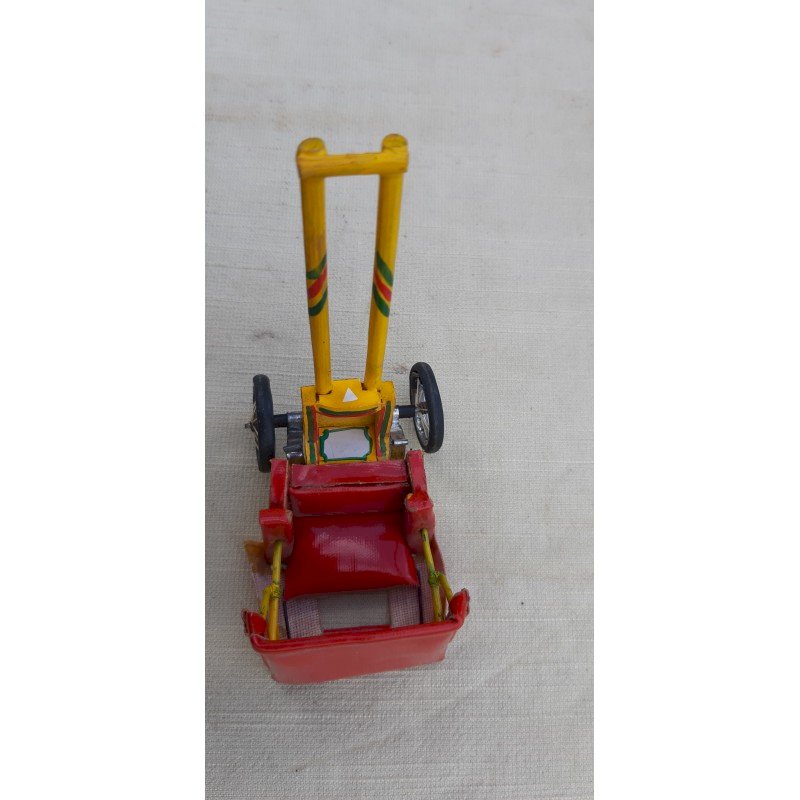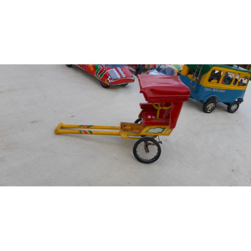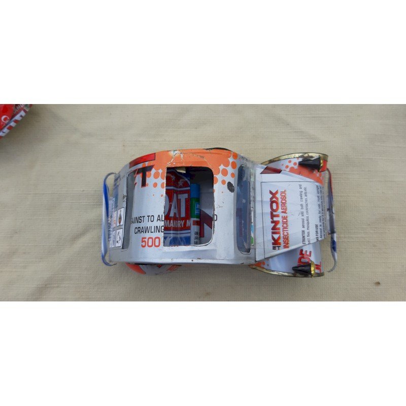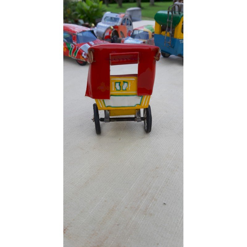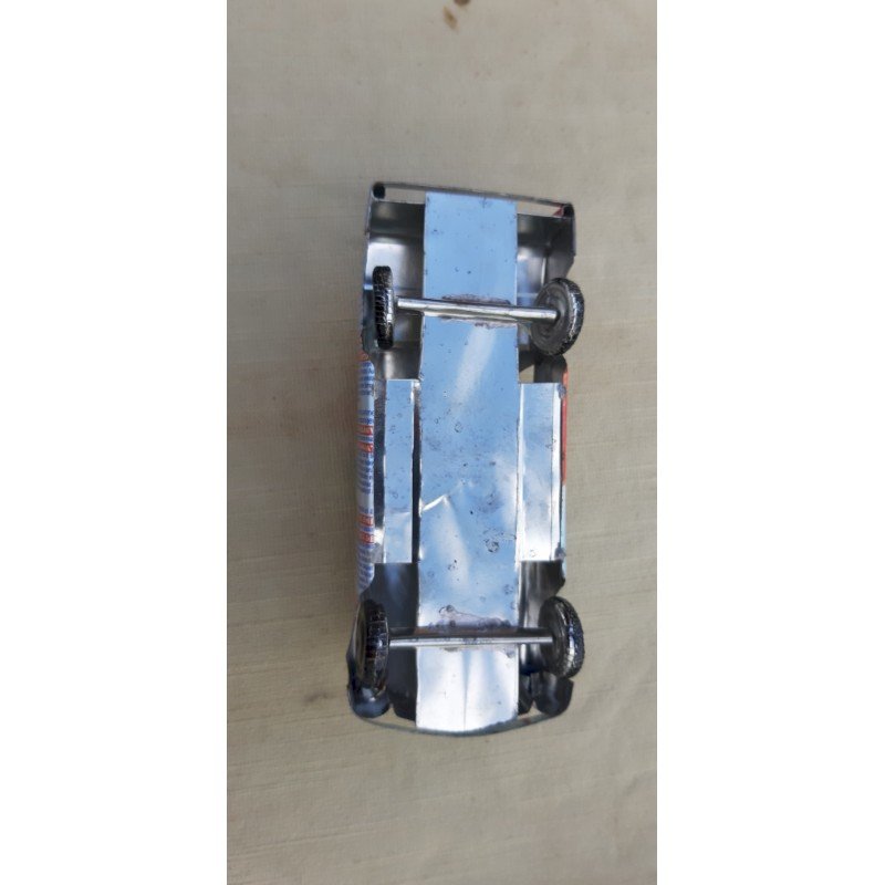 Set of 5 African Cars, made from juice cans, Coca-Cola and others, Bush Taxi height: 12.5 cm, length and width: 18 cm by 8 cm, DS, 2 CV, Peugeot 403 and Tuktuk completely made with local materials by small Africans.