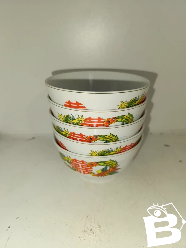 set of 5 Chinese rice bowls decorated with dragons in good condition