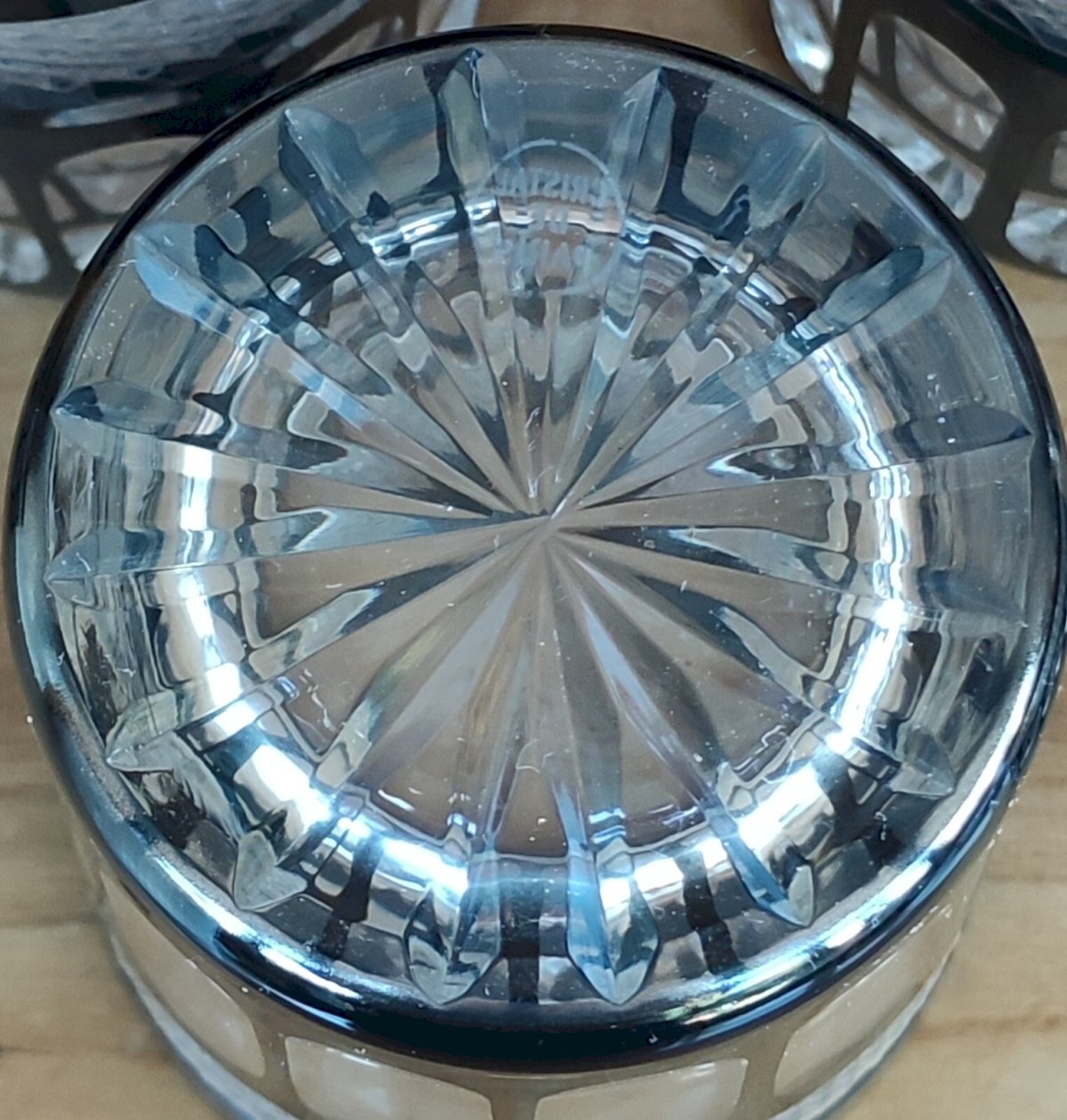 Set of 6 Beautiful Antique Black and Translucent Glasses!!! Made of Crystal Marked crystal De Paris Very Chic Antique Table Art. 6 wine glasses Height 20 cm Diameter top 8.4 cm.