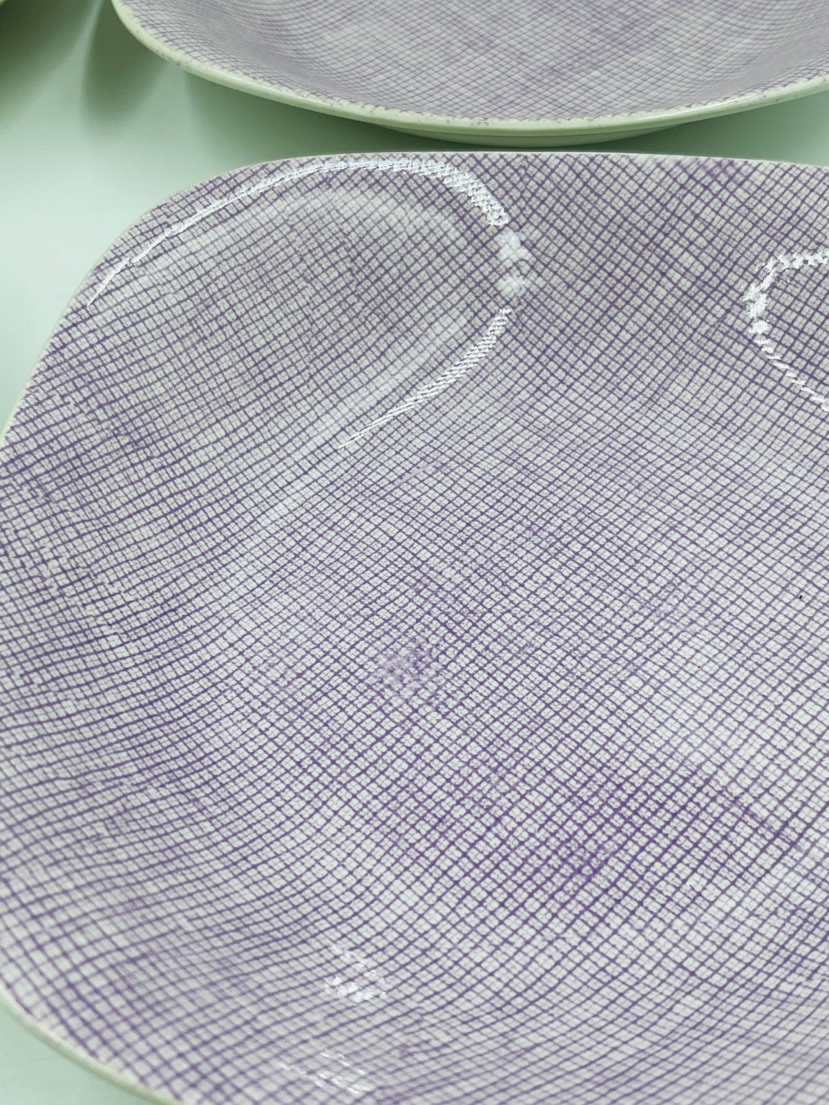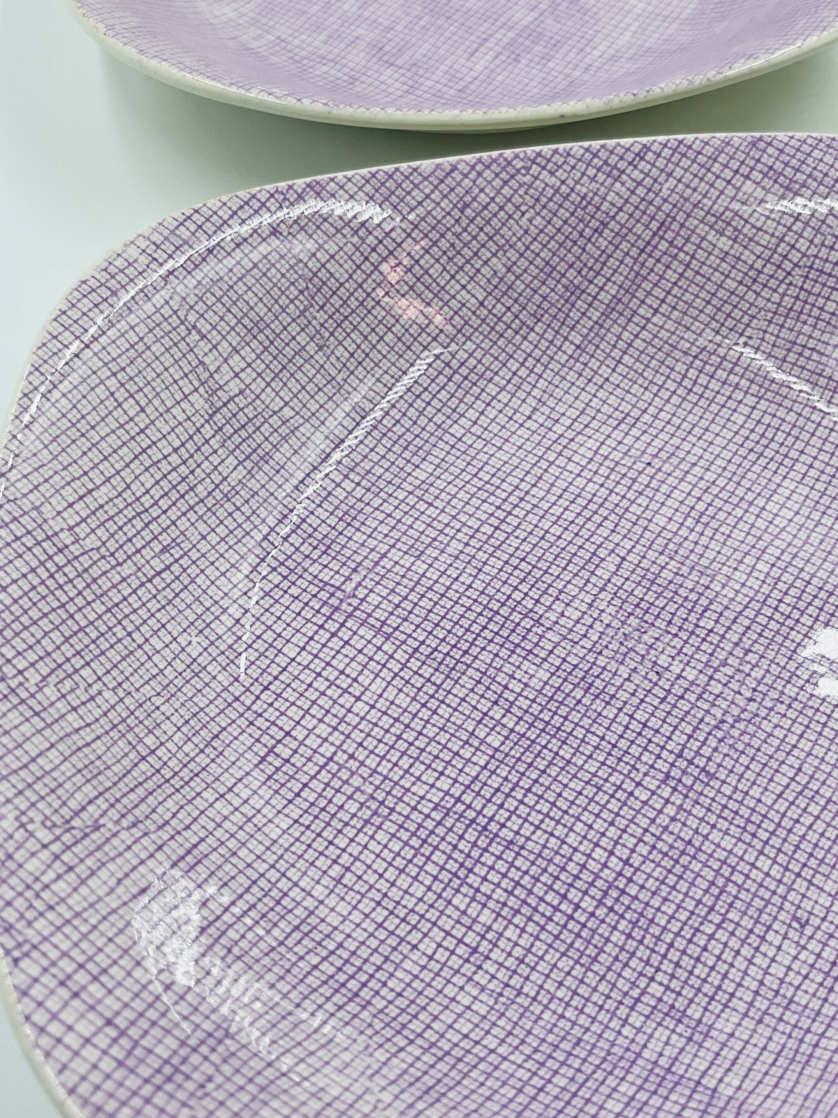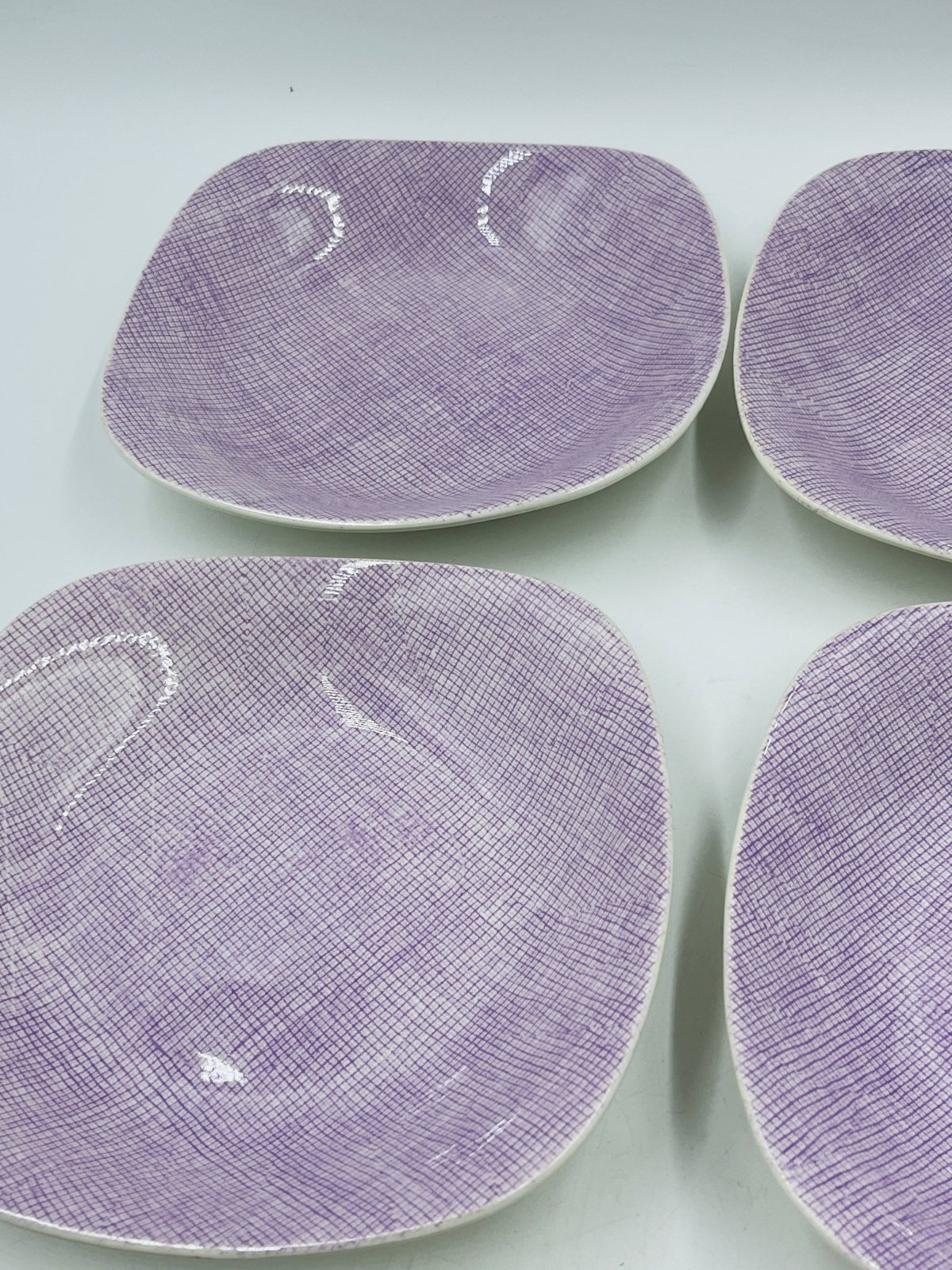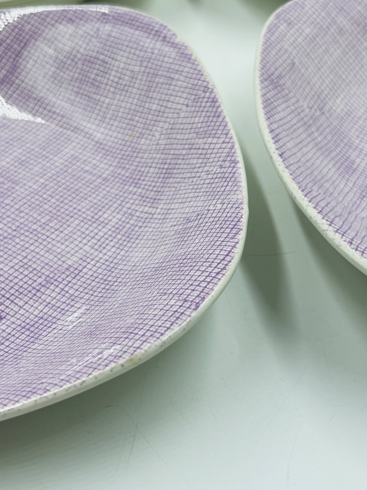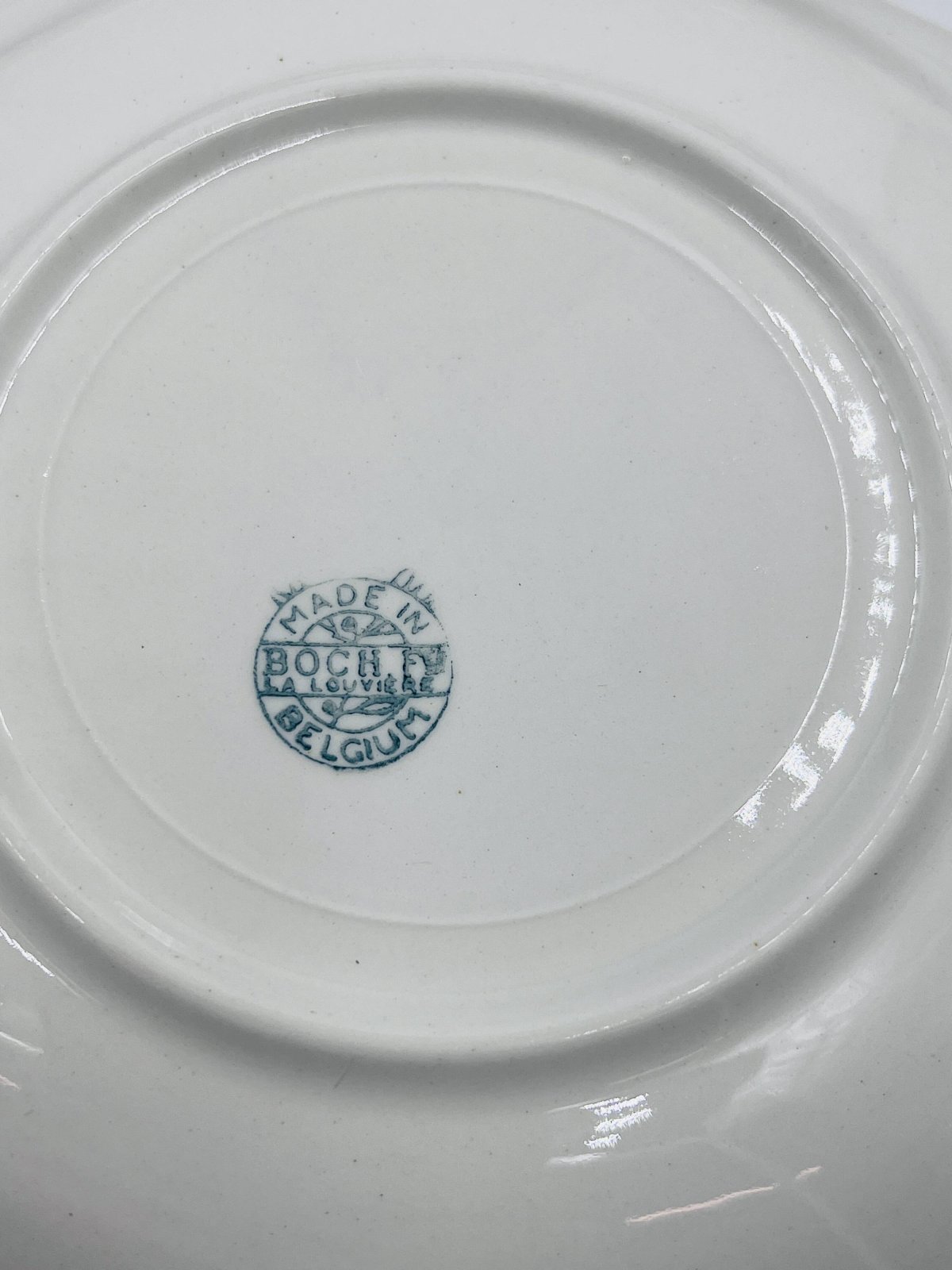 This model, sought after by vintage dishware and 20th-century table art enthusiasts, stands out for its delicate graphic decoration in a unique mauve/lilac hue, typical of the design of that era. Each piece bears the stamped mark "Boch La Louvière – Made in Belgium" on the underside, ensuring its authenticity and origin.
