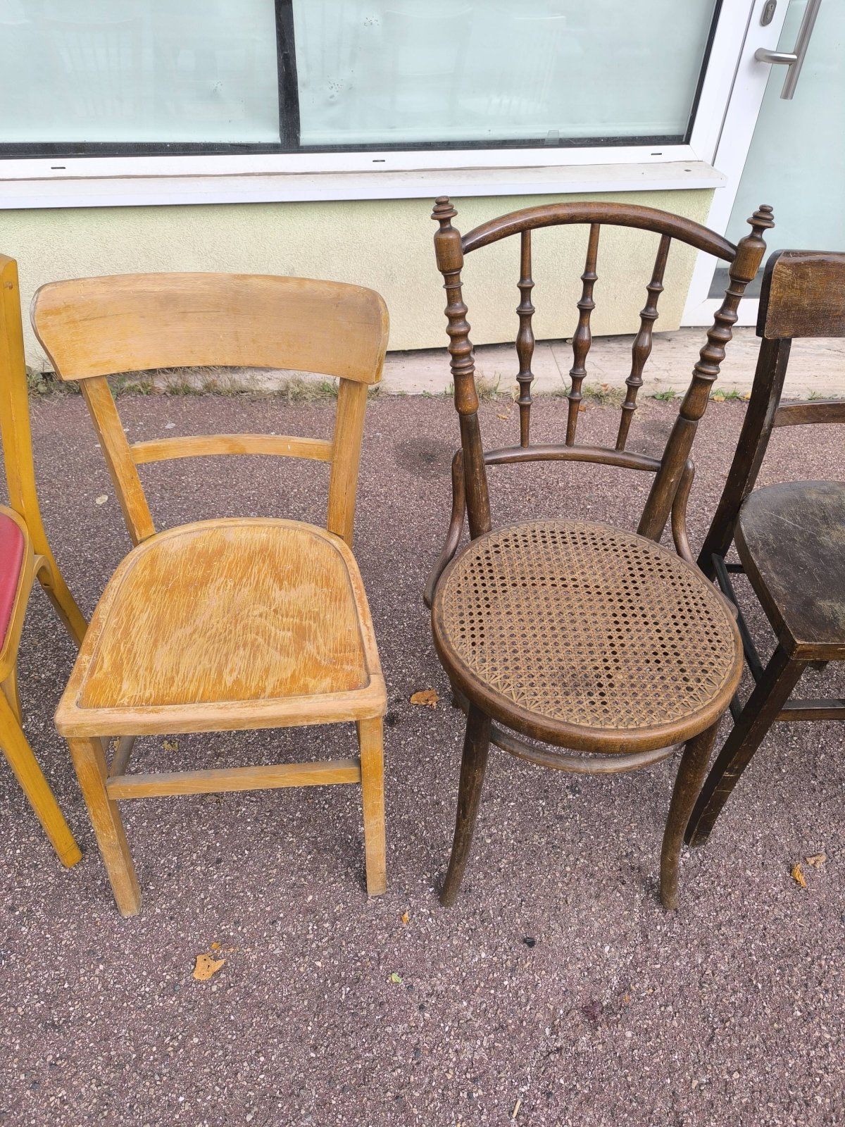 Set of 6 mismatched Vintage bistro chairs - Wood.