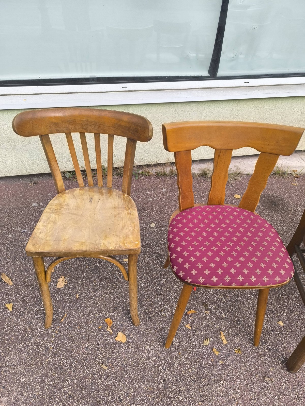 Set of 6 wooden bistro chairs with vintage cushion from the 70s/80s/90s
