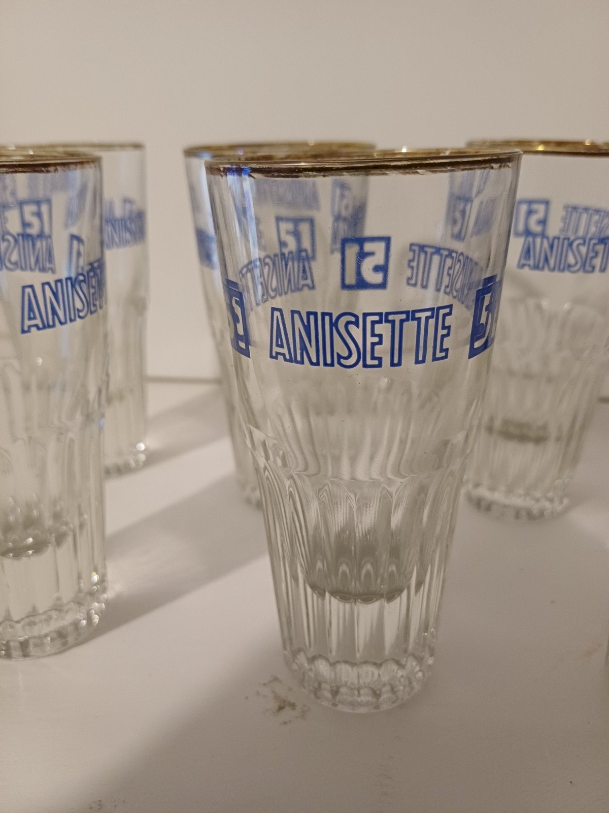 Set of 6 vintage glasses PASTIS 51 ANISETTE 13 cm high very good condition Condition: Used Item that has been used. any imperfections. Number of pieces: 6 Color: Transparent Dishwasher safe: no Type: pastis glass Sub-type: 25 cl Country of origin: France Material: Glass Features: Advertising