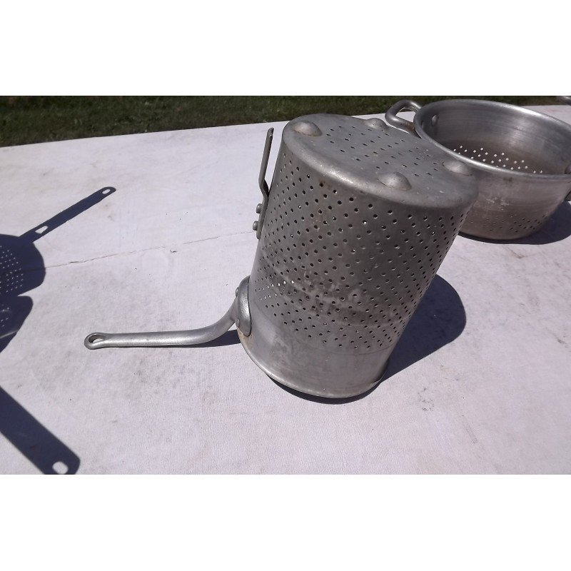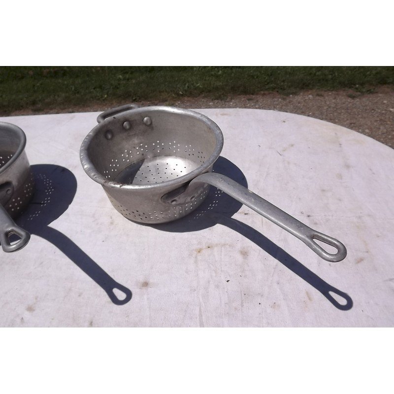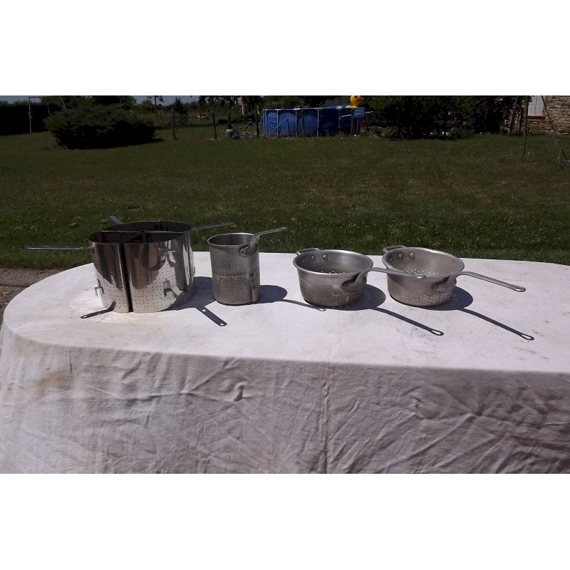 Set of 7 Catering Strainers in Aluminum and Stainless Steel, 2 in Aluminum height: 13 cm, diameter: 26 cm, 1 Aluminum height: 21 cm, diameter: 17 cm and 4 in Stainless Steel height: 23 cm, length and width: 16.5 cm by 20 cm, very good condition, more photos in your messages, visible in GARDONNE (24) shipping via Mondial Relay for: €20.