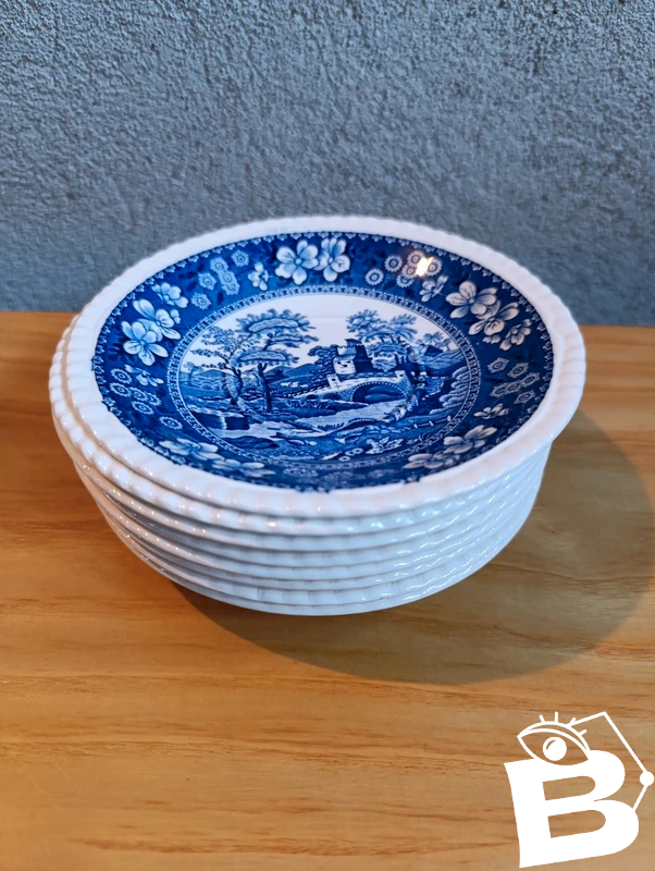 set of 8 Spode England Tower shallow bowls in good condition, with beautiful floral and landscape decoration, diameter 14.5cm, height 2cm, possibility to change the category to reduce shipping costs.