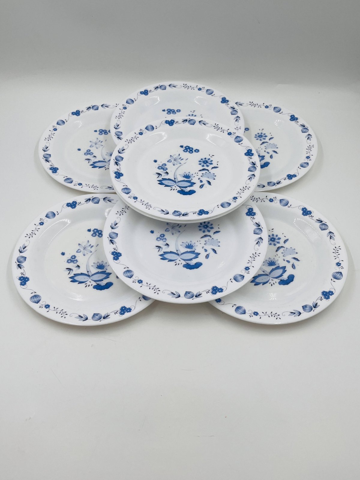 Discover this beautiful set of eight Arcopal plates, model Aster, which embodies elegance and timeless charm.