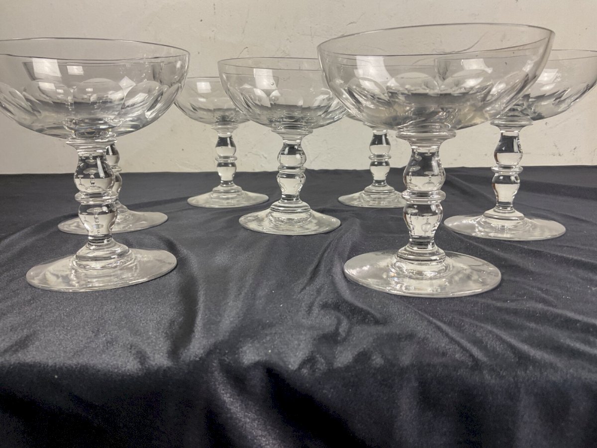 Set of 9 Antique Champagne Cups in Crystal – Baccarat, Gondole Model Height: 11 cm Diameter: 10 cm Brand: Baccarat