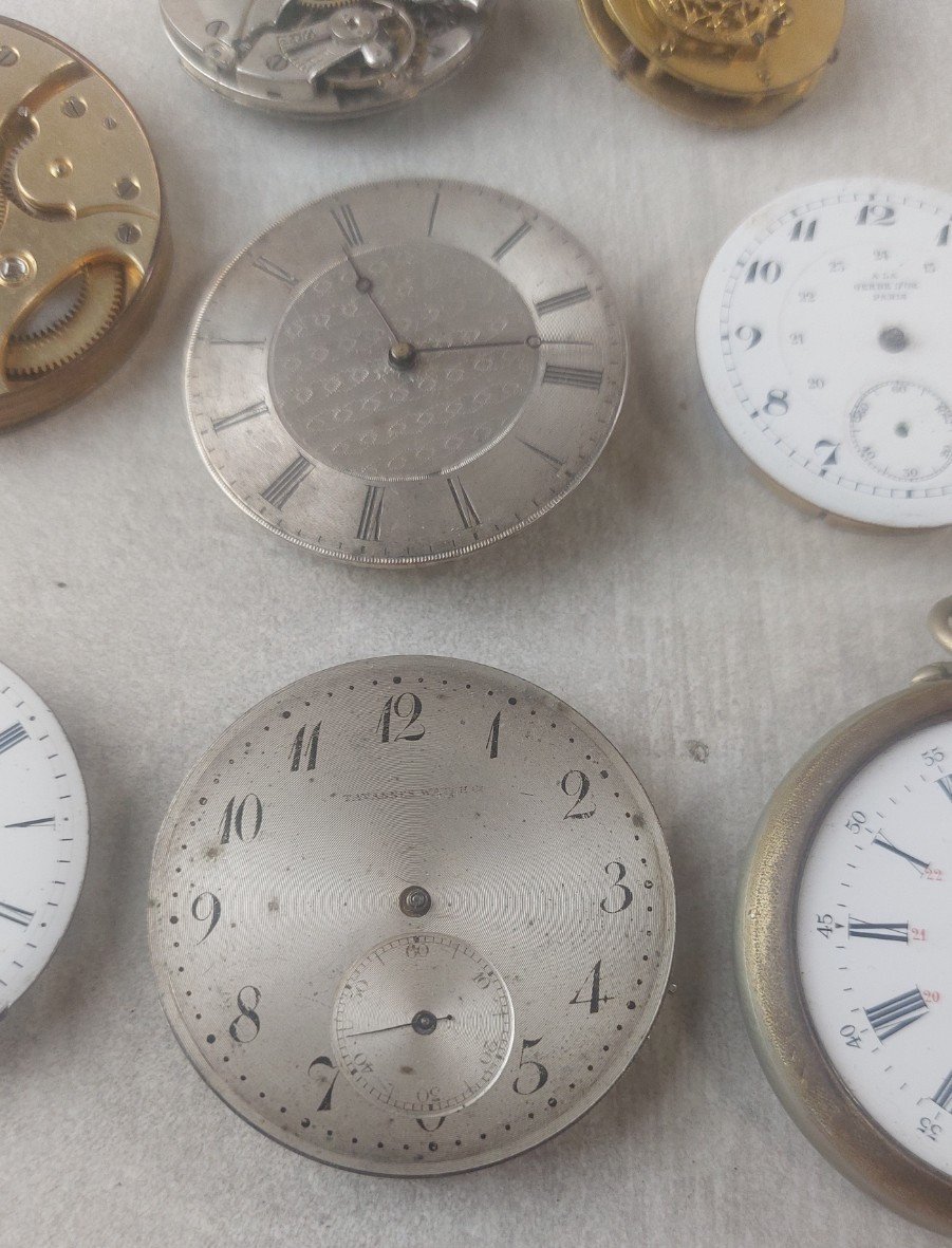 Set of 9 vintage movements/mechanisms + pocket watch dials for parts see photos. Check out my other items! Reduced shipping costs for combined purchases. Condition: Used item that has been worn. Possible imperfections. Type: Movement part.