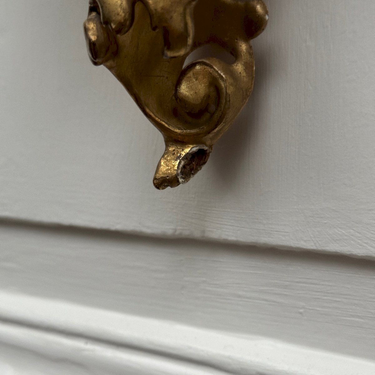 Set of three gilded wooden consoles in Rococo style, late 19th century M3928 These three Rococo style consoles are made of gilded wood, they are small in size and feature a lovely gold leaf finish. In terms of condition, there are some minor losses, signs of wear due to use, and a few small repairs. Our photos allow you to appreciate the quality of the item. For the condition, please refer to the detailed photos. Feel free to zoom in. The photos are an integral part of the description. Dimensions: - smallest Height: 11.2 cm Width: 9.7 cm Depth: 6 cm - largest Height: 15.2 cm Width: 16 cm Depth: 9.5 cm P: 1676371 I remain at your disposal for any questions. Origin: France Country of origin: France Height: 15.2 cm Material: Bronze Style: Rococo Length: cm Width: 16 cm