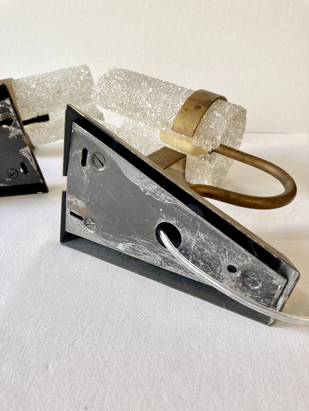 Coming from an old hotel in Ariège, these sconces perfectly illustrate the functional and decorative design of the era, between modernism and space age influence.